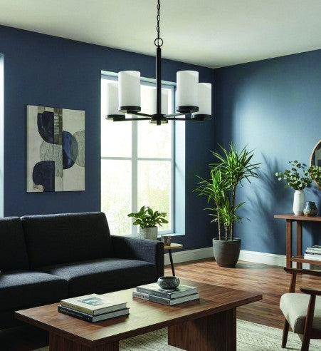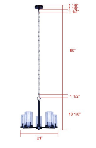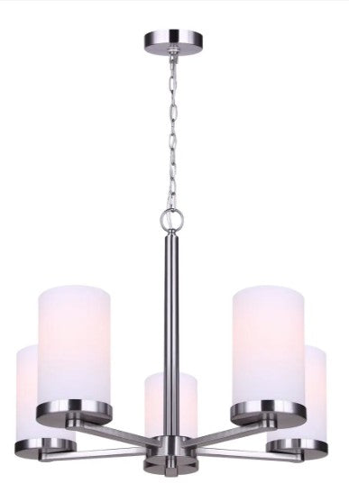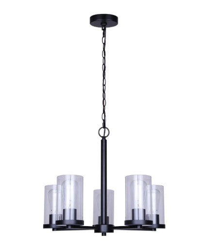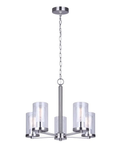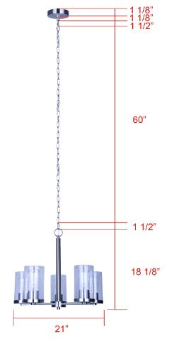 - Five-light design with clear or frosted glass shades offering bright illumination