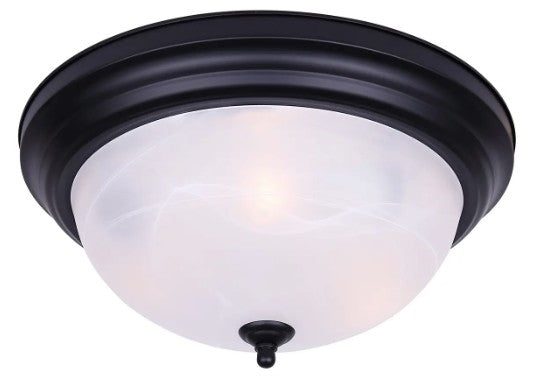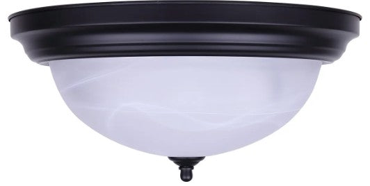 The Canarm 3-light flush mount is a classic, project-friendly ceiling light that delivers reliable performance and timeless style. Finished in matte black with a 15-inch alabaster glass dome, this fixture provides soft, even illumination that works beautifully in any room. Perfect for builder-grade installations, renovations, or simple upgrades, it offers everyday practicality at an exceptional value. Measuring 15" wide by 7" high, the IFM415 accommodates three 60W Type A bulbs, ensuring ample brightness for bedrooms, hallways, kitchens, and more. Ideal for residential or multi-unit projects, this flush mount is a dependable, cost-effective choice that balances functionality with clean, classic design.