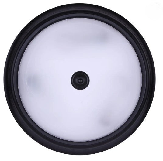 Matte black finish with alabaster glass dome for a classic look