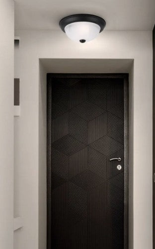 Matte black finish with frosted glass dome and Matte black finish with clear glass dome