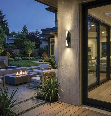 The DYLAN 2-light outdoor wall lantern combines modern form with sculptural presence, creating depth and atmosphere through its play of light and texture. Its ribbed opal glass shade diffuses illumination beautifully, washing walls with soft gradients and a sense of dimension. The durable black finish adds bold definition, offering a sleek yet grounded look that complements contemporary architecture. With textured accents that feel both tactile and refined, DYLAN transforms exterior spaces into layered lighting compositions. Ideal for entryways, patios, or facades, this fixture is designed to endure while adding modern artistry to your home’s exterior.
