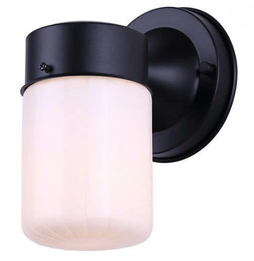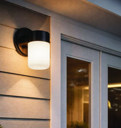 The JUDE outdoor wall light blends modern minimalism with timeless appeal, with a sleek matte black finish and smooth, rounded edges. Inspired by simple vintage lanterns, its compact design feels both refined and versatile, perfect for flanking garage doors, patios, or entryways. The opal strip glass softens the glow of a single 60W bulb, providing light that is functional yet warm and inviting. Compact at 4.625 inches wide by 9.625 inches high, JUDE enhances curb appeal while complementing a variety of architectural styles. Built for exterior durability, it is a stylish upgrade to any home facade.