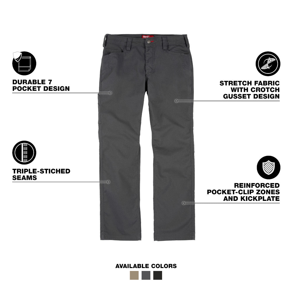 Work Pants - Milwaukee Mens Work Pants (Black, Grey or Khaki), M650