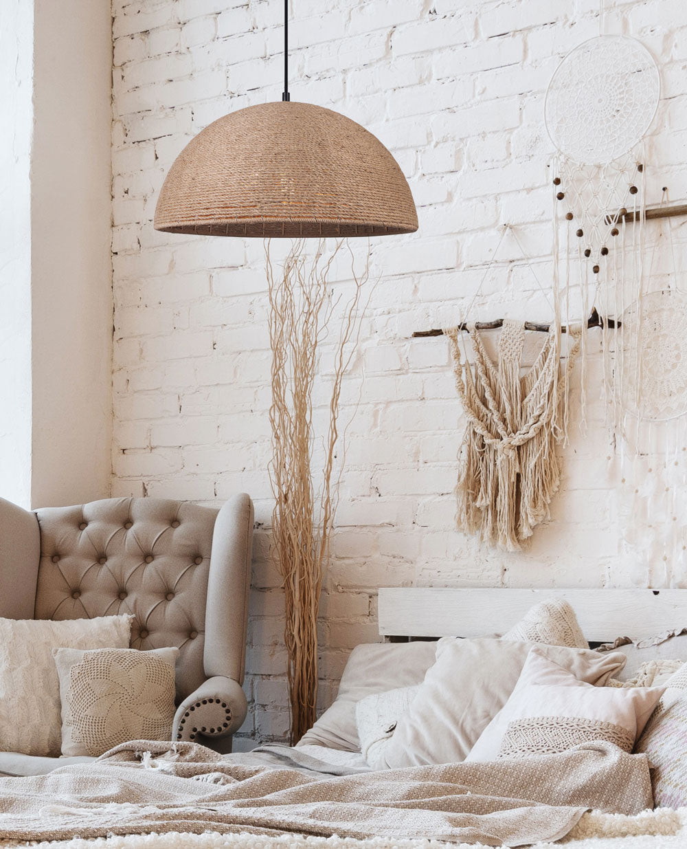 Naturally beautiful, with perfectly woven rope and a beach-like vibe, AUBRIE will instantly transform your room with warmth, light and endless bohemian style. AUBRIE's earthy appeal and natural finish will draw you into its elements of rope and metal like a moth to a flame, leaving you with a gorgeous statement piece and the perfect amount of light.