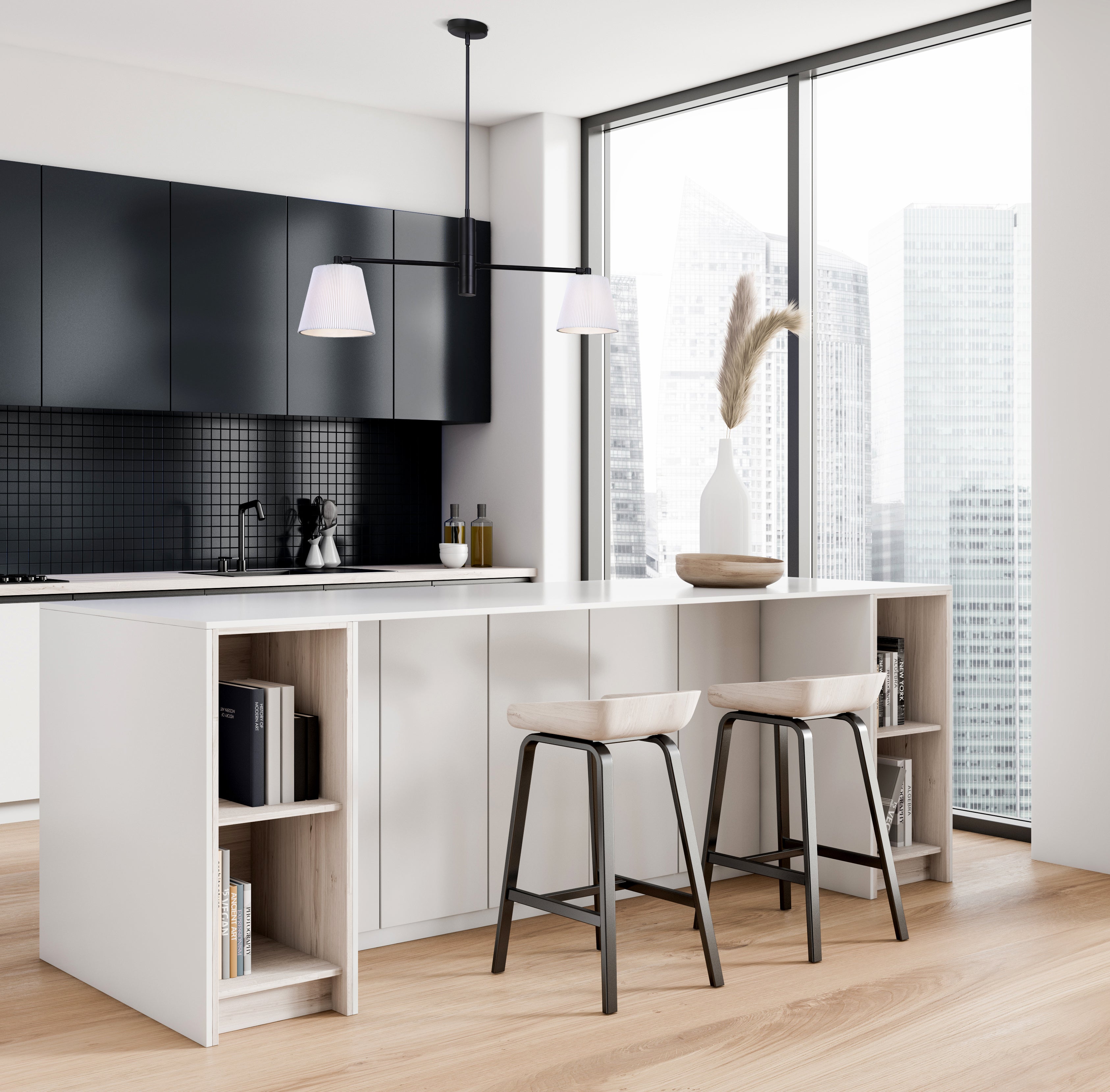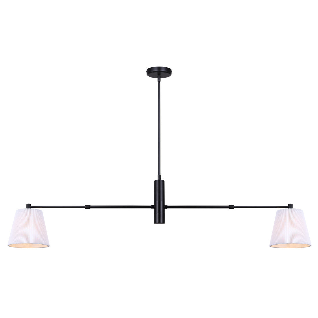 Meet Aspen, the timeless statement piece that blends simplicity and charm. This stunning black pendant features sleek arms holding crisp, pleated white fabric shades. Its clean lines and balanced design create a perfect harmony of modern aesthetics and classic appeal. Whether illuminating a dining room or adding warmth to a living space, this fixture exudes a soft, inviting glow, becoming a focal point in any room.