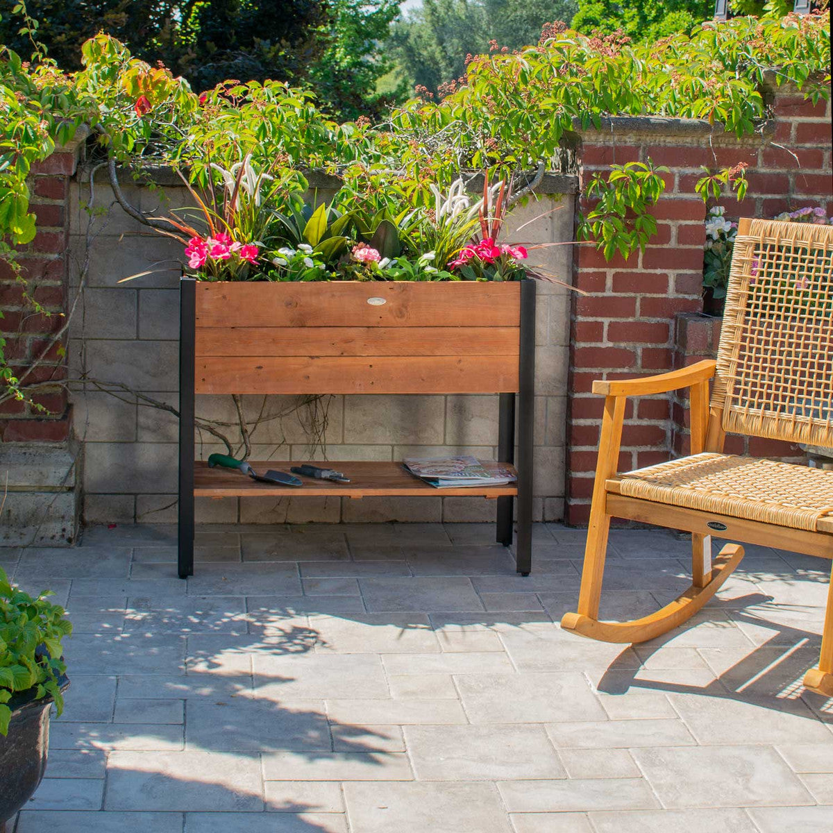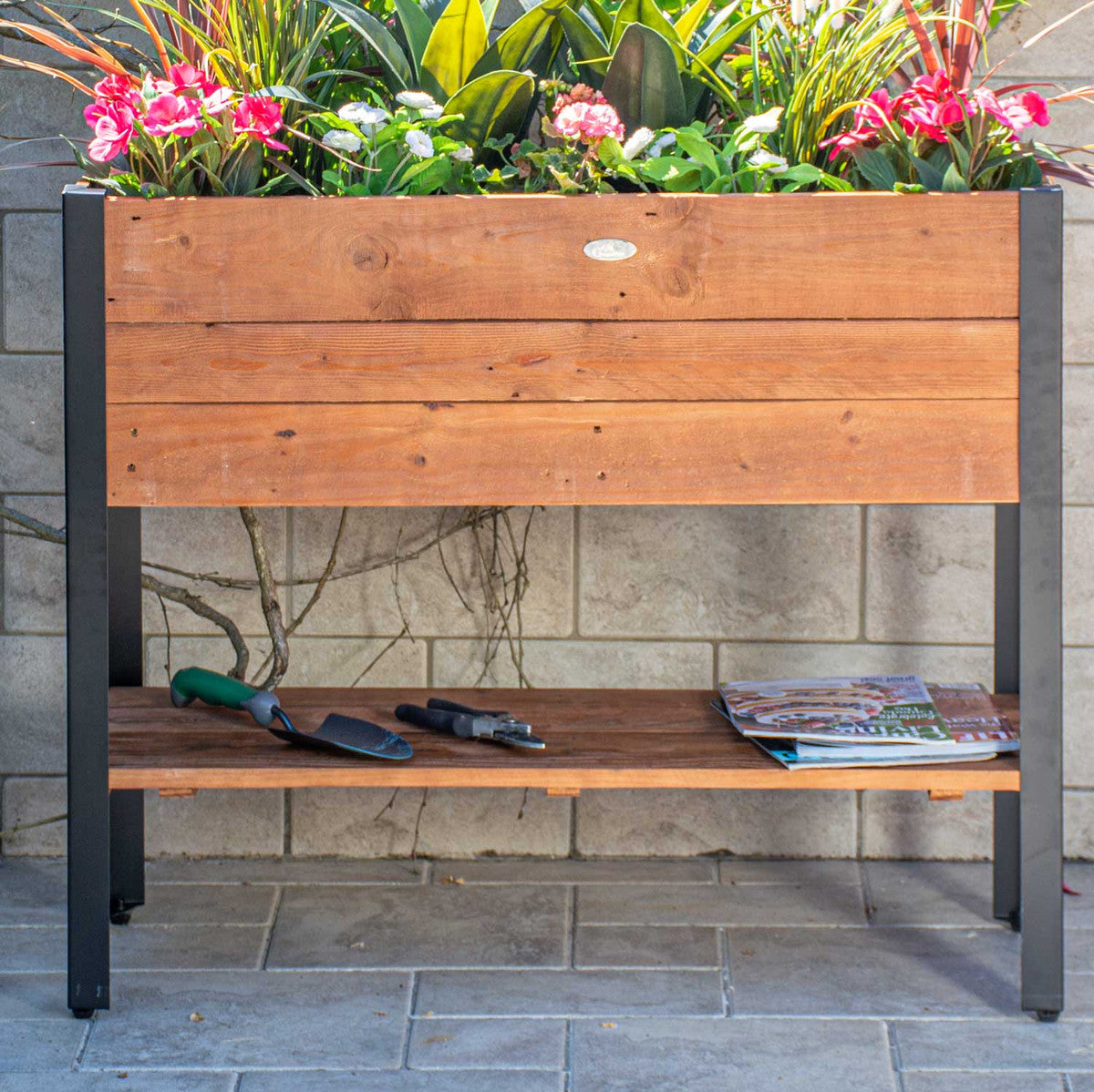 When you want a planter box and storage, this recycled wood and metal planter includes a shelf to hold gardening tools, supplies, or anything you need. The pine used in this box is FSC-certified from pine pallets and the powder coated steel frame and legs provides extra stability and support.