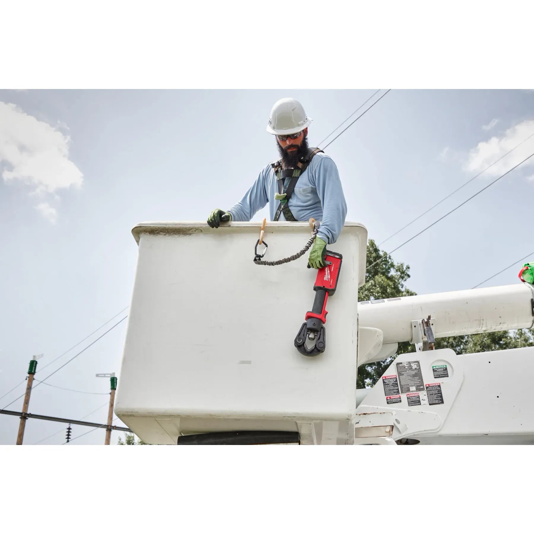 The MILWAUKEE® M18™ FORCE LOGIC™ 11T Dieless Latched Linear Utility Crimper is the easiest way to crimp utility connectors. This battery powered crimper tool produces connections that meet ANSI C119.4 from #4 -556MCM AAC/ACSR, and UL486A-B from #4 – 1000 MCM Cu/Al, connection integrity standards on several leading brands of utility connectors. The inline design and centered, balanced grip allows use with one hand in multiple orientations. An enlarged trigger and electronic release button enable both left and right-handed users to easily activate the tool while wearing Class 3 gloves without changing hand position. The head of the crimper rotates 340° and the quick release and push-to-close style latch pin is easily opened or secured with just one touch. Predictive Force Monitoring (PFM™) constantly measures output force to deliver the fastest crimp speeds and ensures full pressure is reached every time. A pre-crimp battery check ensures that the battery has enough charge to complete a full crimp. Equipped with fully enclosed high-speed hydraulics, a POWERSTATE™ Brushless Motor, REDLINK™ Electronics, and REDLITHIUM™ Batteries, the tool provides unmatched reliability in the toughest conditions. Integrated with MILWAUKEE® ONE KEY™ Technology, the crimper stores real-time crimp data which can then be used to view historical performance data, sync data to the cloud for easy access, and build professional reports on the back end.