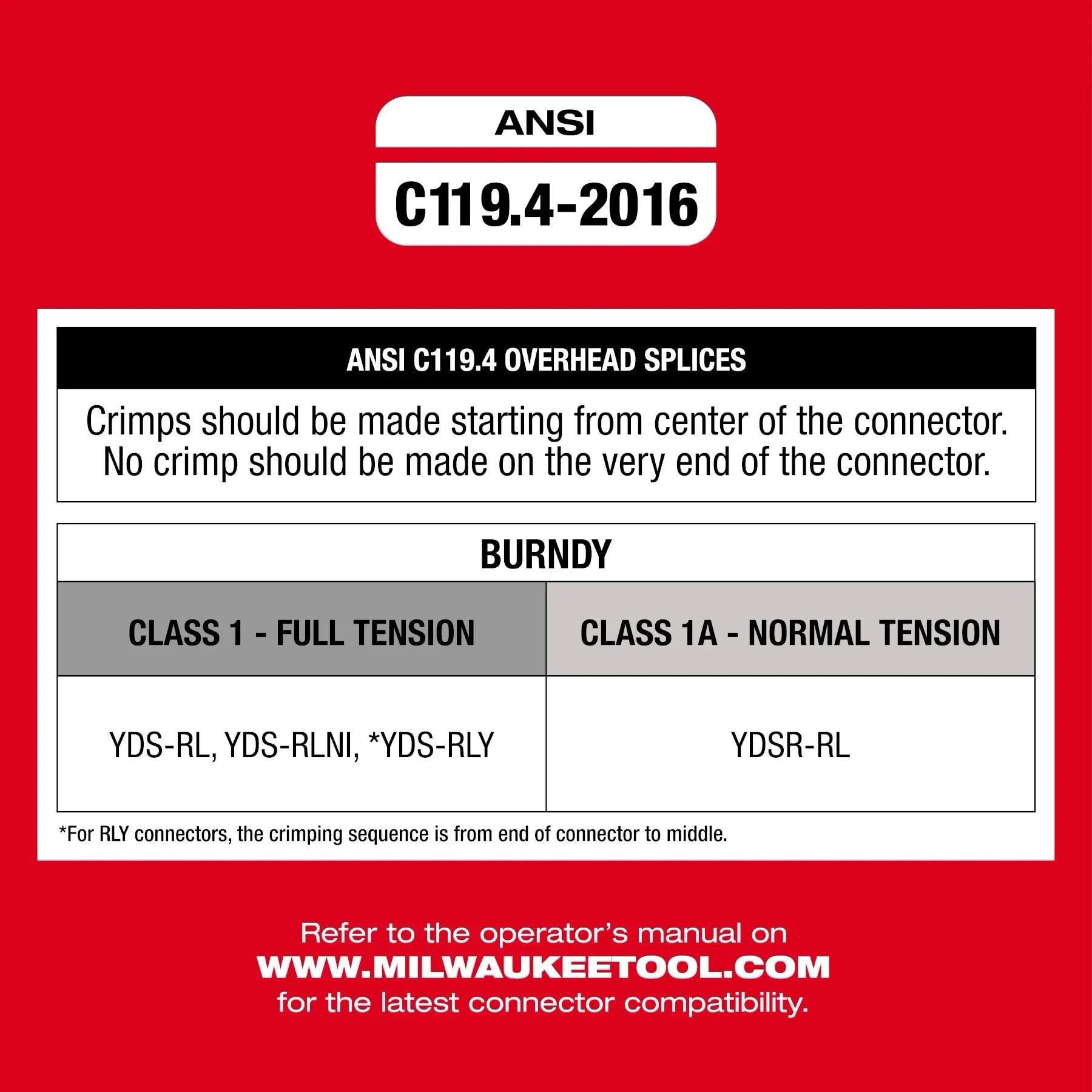 - Produces connections that meet ANSI C119.4 and UL486A-B certifications on several leading brands of utility connectors