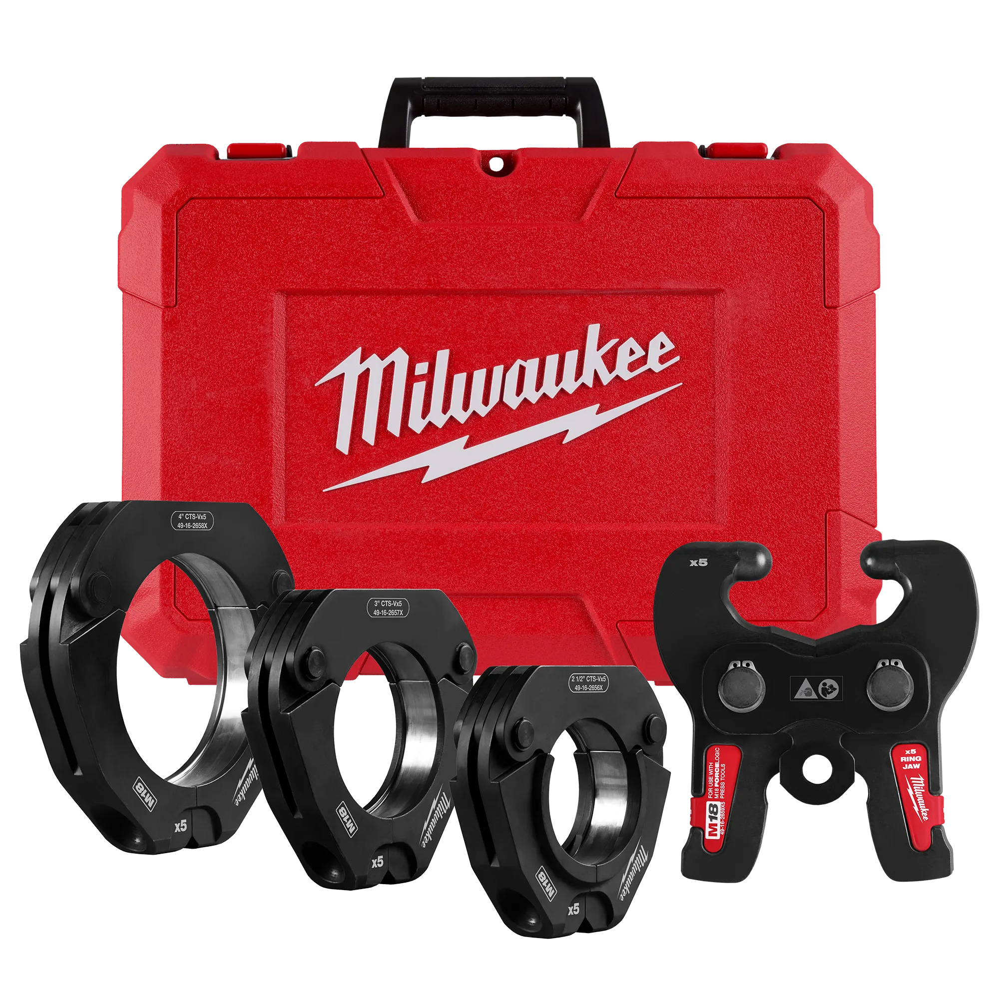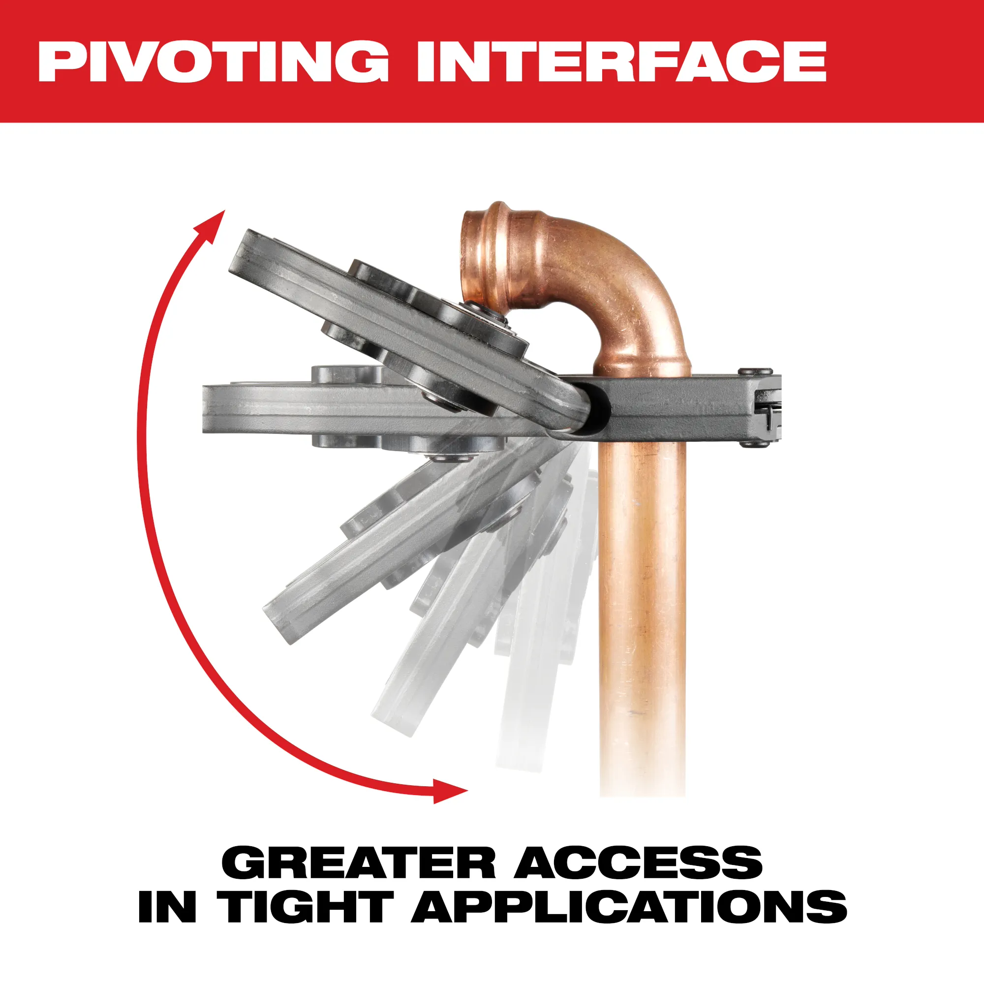 The MILWAUKEE® 2-1/2" – 4” CTS-V Pivoting Press Ring Kit is designed for use with M18™ FORCE LOGIC™ Press Tools on Viega® ProPress®, Apollo® Press® and other press fitting systems. The CTS-V Pivoting Press Ring Kit is a more efficient alternative to sweat and solder, enabling you to press connections on 2-1/2" – 4” copper and copper tube-sized (CTS) stainless steel pipe. Pivoting functionality delivers greater access in tight spaces when paired with the X5 Ring Jaw & M18™ FORCE LOGIC™ Press Tools. Additionally, Milwaukee®'s press blocking system prevents improper ring and ring jaw mismatch providing peace of mind in quality connections. The 2-1/2" – 4” CTS-V Pivoting Press Ring Kit, combined with the ring jaw and in-line M18™ FORCE LOGIC™ Press Tools, deliver unrivaled access in tight spaces and around installed pipes, providing you with controlled, flameless copper connections for unmatched productivity.