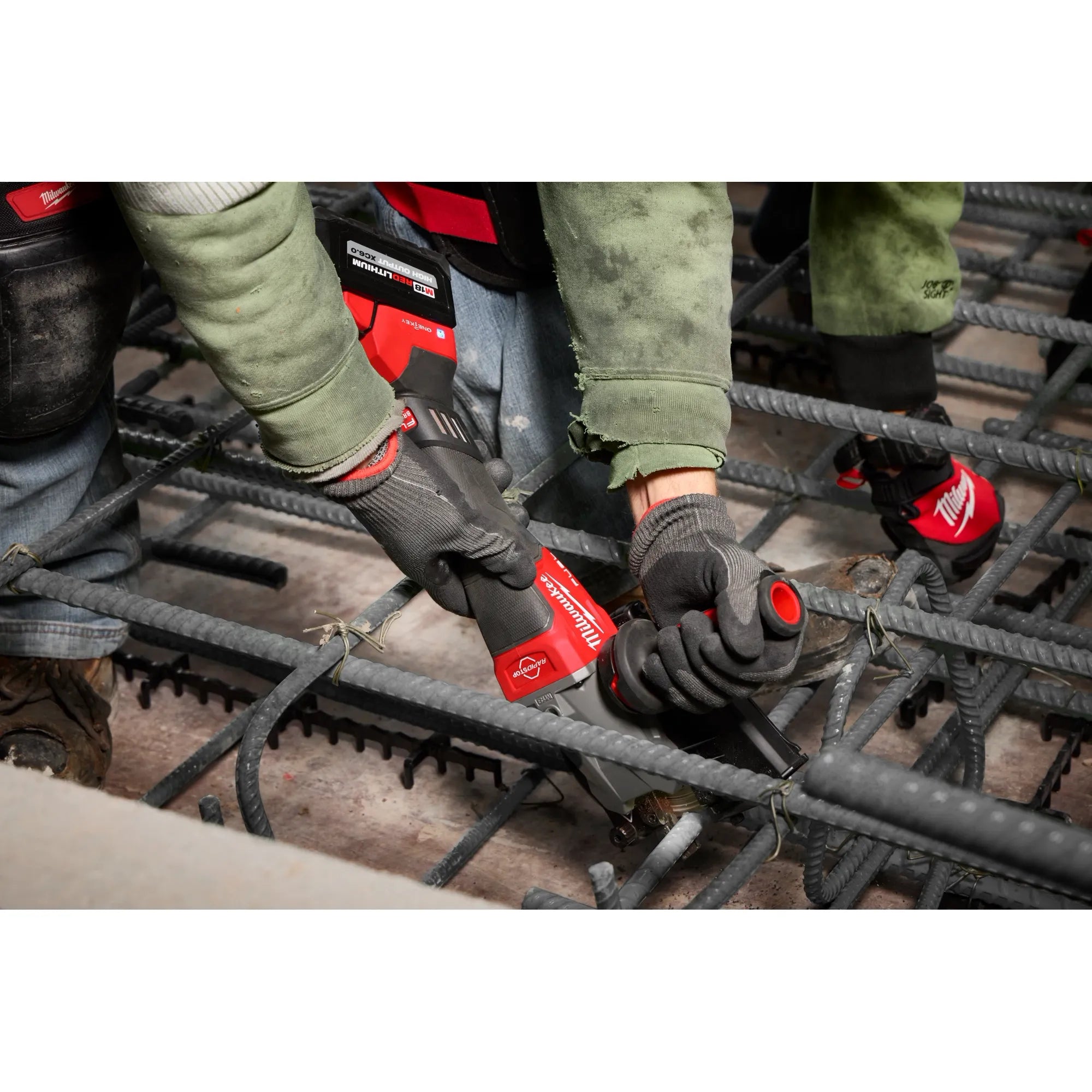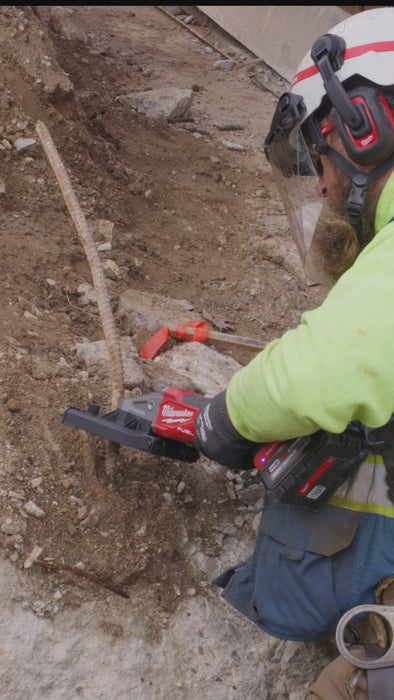 The M18 FUEL™ #10 (1-1/4") Rebar Cutter is designed for the reinforcing ironworker, providing faster cutting, increased cuts per charge and cold cuts with less sparks than an abrasive wheel. Featuring POWERSTATE™ Brushless Motor Technology, the M18 FUEL Rebar Cutter provides 2 second cuts through #5 bar. When paired with our M18™ REDLITHIUM™ HIGH OUTPUT™ XC6.0 battery, it delivers up to 240 cuts in #5 bar. Easy blade change with a connected cover and limited fasteners. RAPIDSTOP™ Braking provides stop times under 1 seconds with the Milwaukee® #10 (1-1/4”) Rebar Cutting Blade. Exclusively compatible with Milwaukee® #10 (1-1/4”) Rebar Cutting Blade, which uses carbide teeth to cut faster and with less sparks than an abrasive wheel. The M18 FUEL™ #10 (1-1/4") Rebar Cutter provides the durability and performance to handle the toughest jobsite conditions and takes steel rod cutting to the next level.