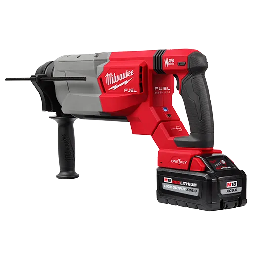Milwaukee's M18 FUEL™ 1-1/4” SDS Plus D-Handle Rotary Hammer w/ ONE-KEY™ delivers on the drill speeds normally associated with SDS Max rotary hammers. The hammer drills Faster ¾” Holes and is Lighter Versus SDS Max rotary hammers, includes AUTOSTOP™ Control for Enhanced Safety, and can drill up to (25) ¾” x 4” Holes per Charge when paired with our M18™ REDLITHIUM™ HIGH OUTPUT™ XC6.0 Battery. Our in-line D-Handle design allows access in tight spaces and provides superior balance and ergonomics for downward drilling. Our POWERSTATE™ Brushless Motor delivers 3.65 ft-lbs of impact energy, 810 RPM, and 4,650 BPM, providing the speed and power for the most demanding applications. This hammer provides maximum control and enhanced safety with the AUTOSTOP™ Kickback Control, preventing over-rotation if the tool binds up while drilling in concrete with rebar or hard aggregate. This tool is compatible with our M18 FUEL™ HAMMERVAC™ 1-1/4” Dedicated Dust Extractor providing on-board OSHA Table One compliance. Our AVS Anti-Vibration System reduces vibration for maximum comfort. The cordless rotary hammer is compatible with ONE-KEY™ to track the tool’s location and manage inventory. The REDLINK PLUS™ intelligence tool technology ensures maximum rotary hammer performance and protects it from overload, overheating, and over-discharge. Our M18™ REDLITHIUM™ HIGH OUTPUT™ XC6.0 Battery delivers 50% more power while running 50% cooler than our M18™ REDLITHIUM™ XC batteries.