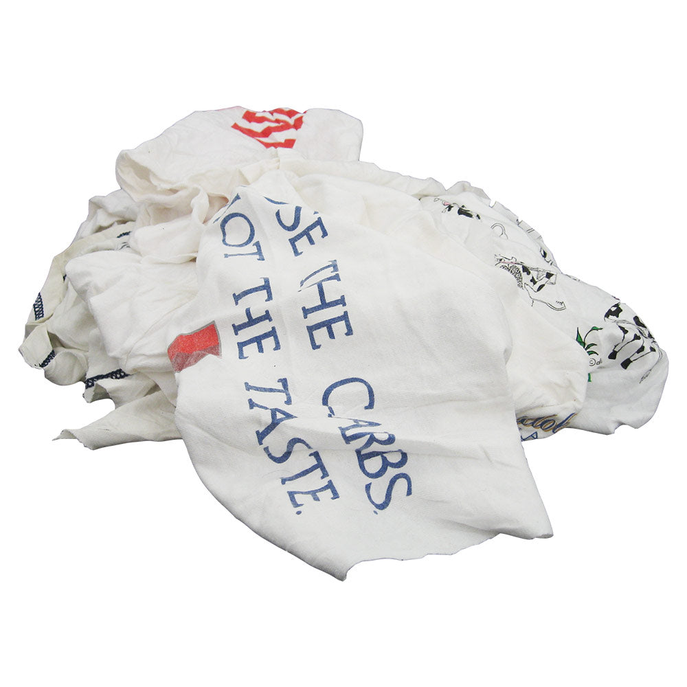 White printed polo t-shirt is a popular alternative to the all white t-shirt rag. This wiper is made from light colored or white wipers with some screen print or embroidery present. This wiping cloth is an great choice for painters.