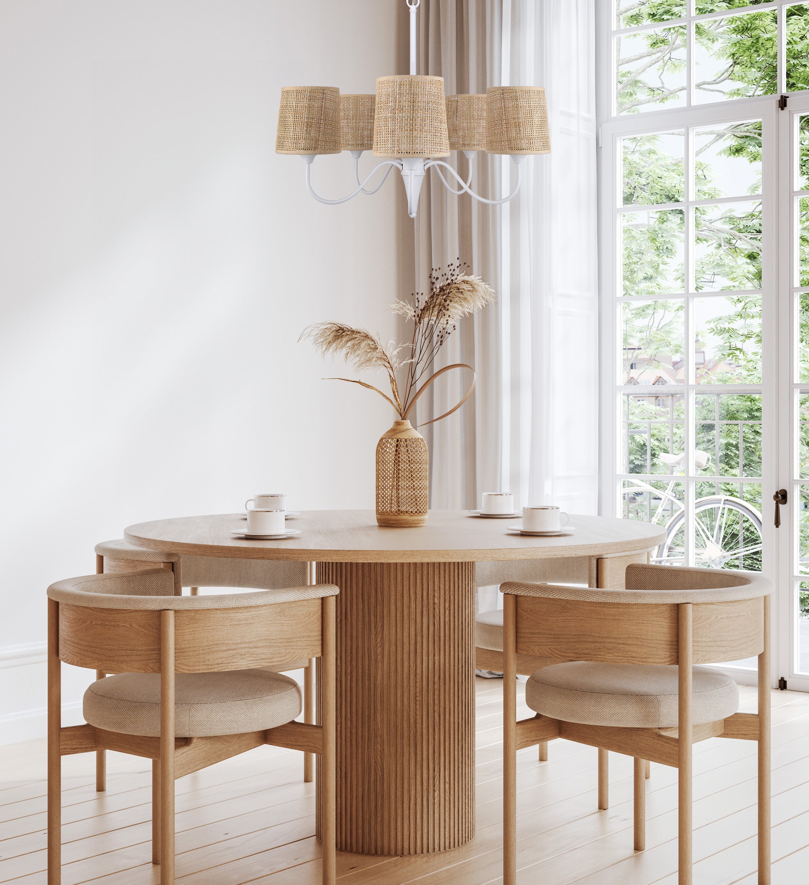 The Daisey French country chandelier combines rustic charm with refined elegance, creating inviting and cozy spaces. Its unique curvature adds a striking visual impact, seamlessly blending classic style with a natural, earthy charm. Perfect for infusing warmth and character, this chandelier elevates any room with its timeless appeal.