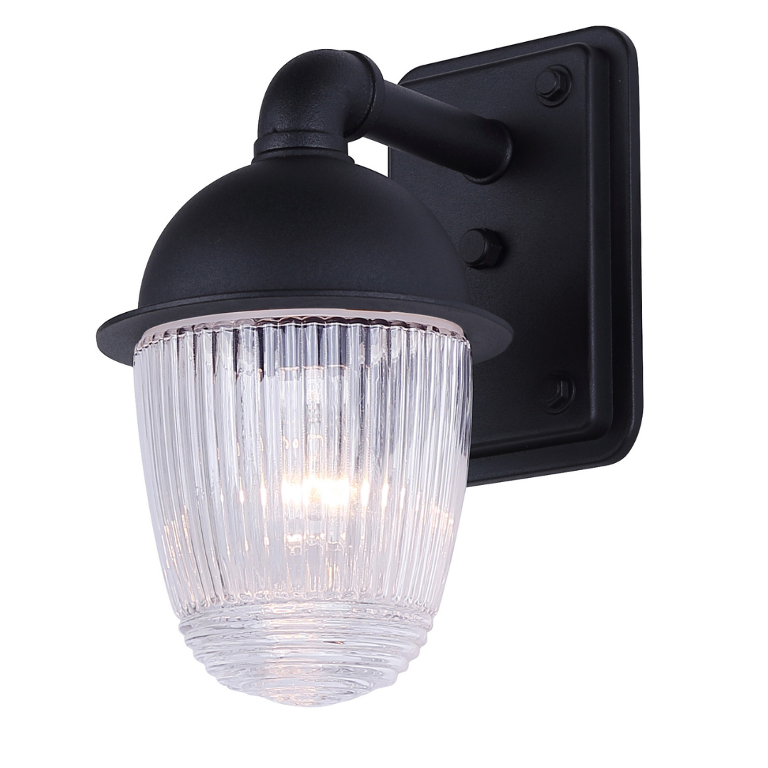 Illuminate your outdoor space with Seni. The seamless integration of black elements add a touch of contemporary warmth, while the beautiful clear ribbed glass creates a stunning visual texture. Where the marriage of sleek design and natural accents craft a statement piece that enhances your outdoor ambiance with elegance.