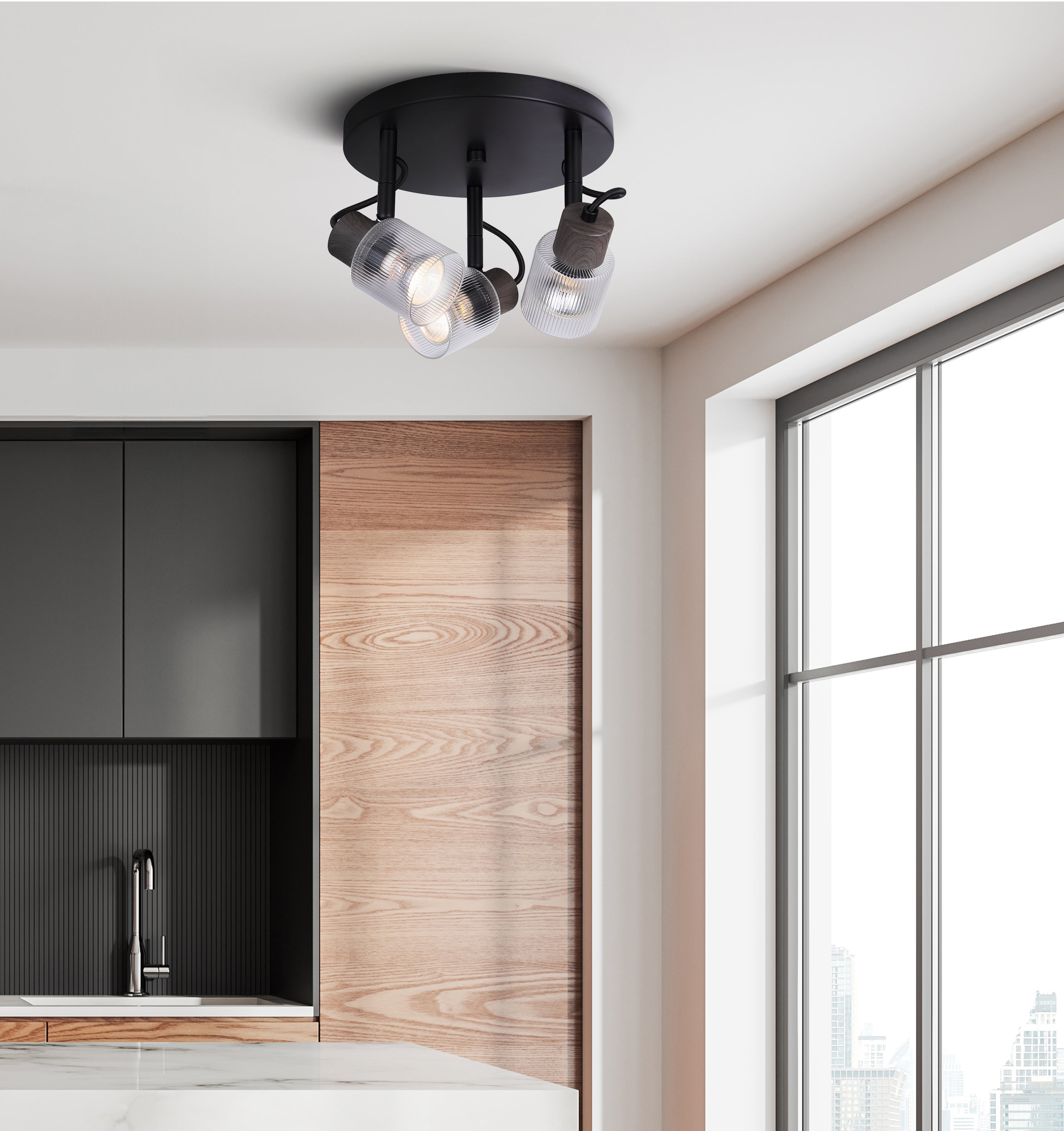 Introduce a transitional-inspired touch to your home with the Owen LED track light, featuring a sleek clear ribbed glass shade and faux wood accent. Its modern finish and adjustable design ensure ideal light placement, making it a perfect fit for a mid-century modern aesthetic. Owen enhances your space with its elegant and versatile charm.
