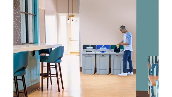 - Intuitive lid openings help patrons and staff sort recyclables more effectively