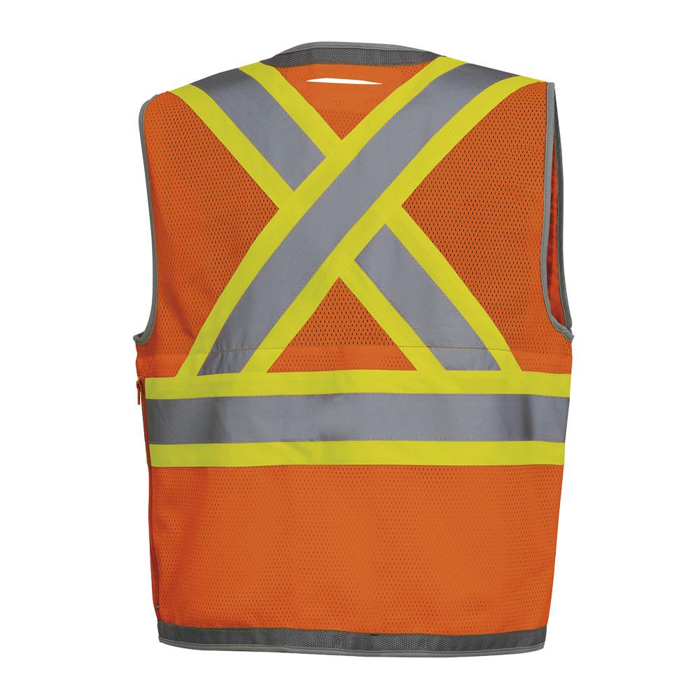 Safety Vest - Pioneer Hi-Viz Orange Mesh Back Zip Front Surveyor's Vest, 6672