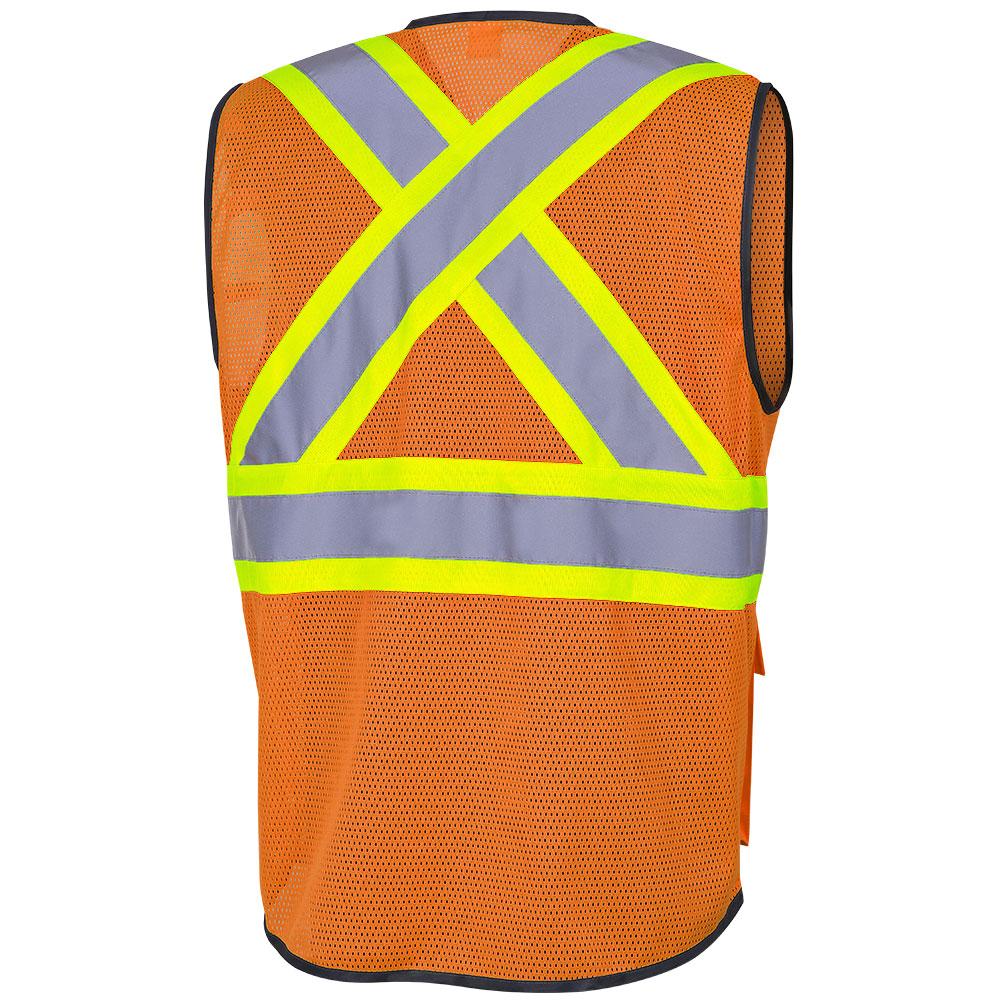 Safety Vest - Pioneer Hi-Viz Orange Tear-Away Mesh Back Zip Front Vest, 6935