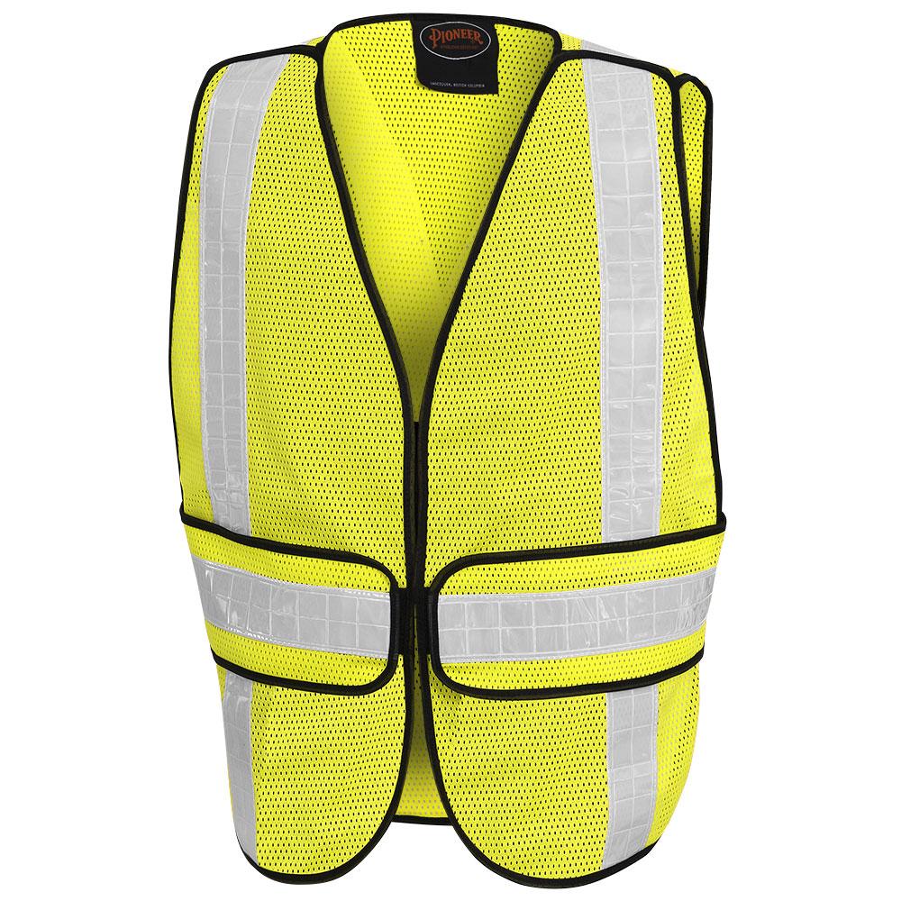 Safety Vest - Pioneer Hi-Viz Yellow/Green Poly Mesh Zipper Front Multipocket Vest, 6961