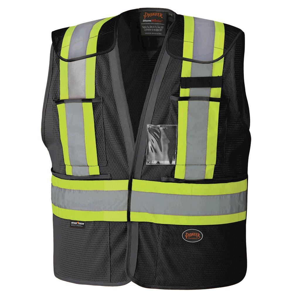 Safety Vest - Pioneer Black Poly Mesh Drop Shoulder Tear Away Vest, 6933BK