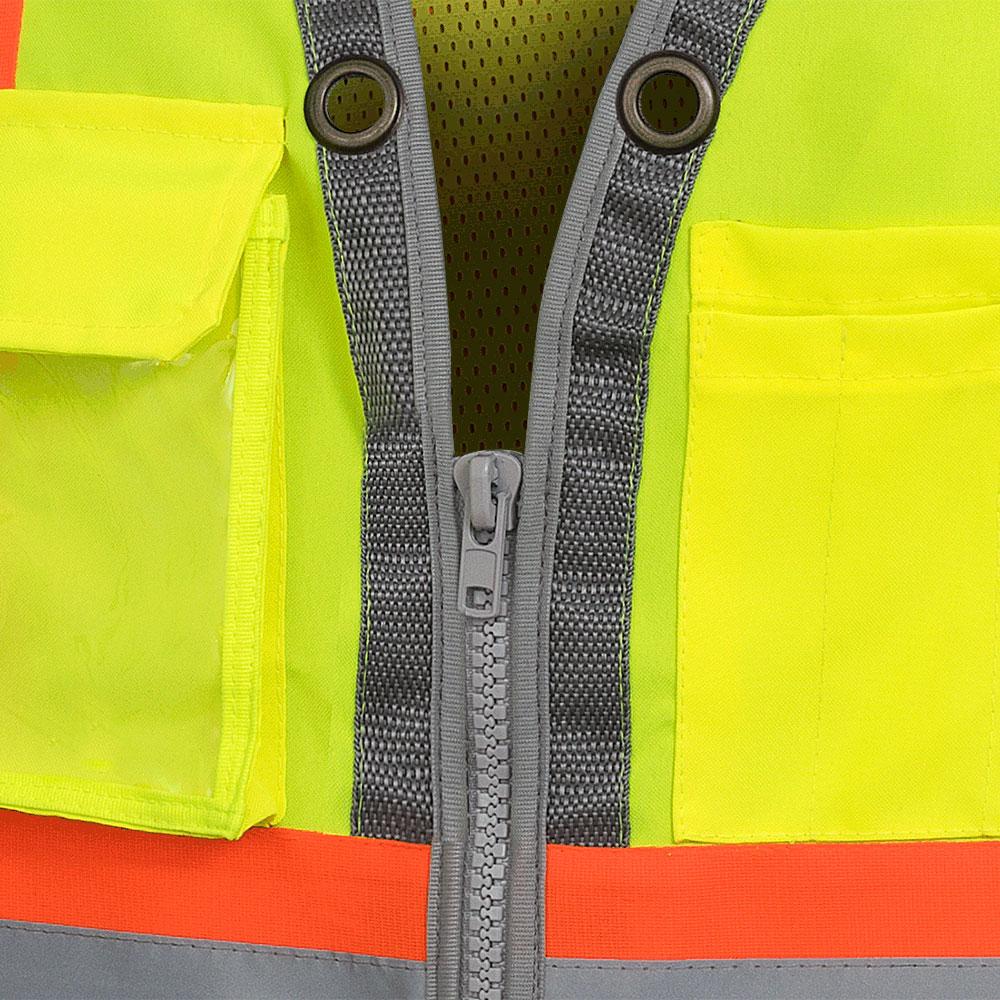 Safety Vest - Pioneer Hi-Viz Yellow/Green Mesh Back Zip Front Surveyor's Vest, 6673