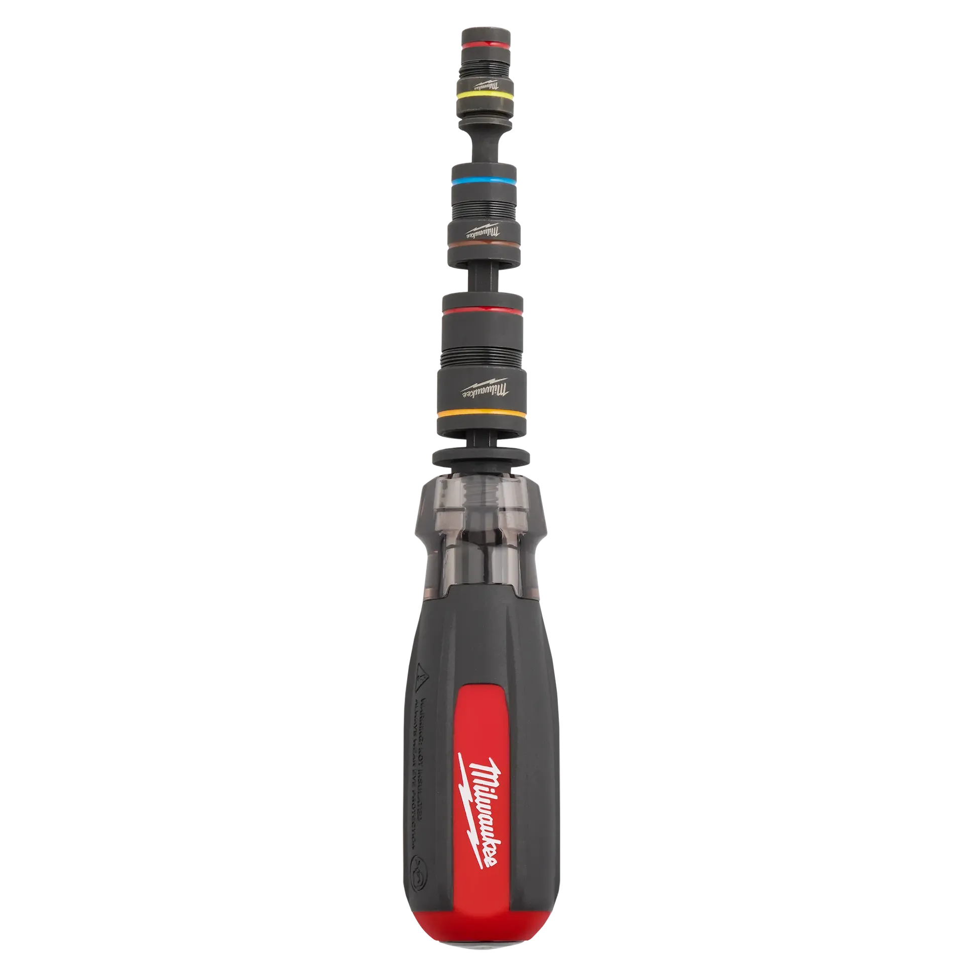 The Multi-Nut Driver W/ SHOCKWAVE Impact Duty™ Magnetic Nut Drivers delivers the most versatile nut driving. This multi-bit driver features easy-access on-board storage which keeps nut drivers organized, allowing users to quickly change between sizes. The removable SHOCKWAVE Impact Duty™ 1/4" hex shank is impact ready for maximum jobsite versatility. The nut driver also features ink filled color coded bands for easy size identification. The driver handle is backed by a limited lifetime warranty.