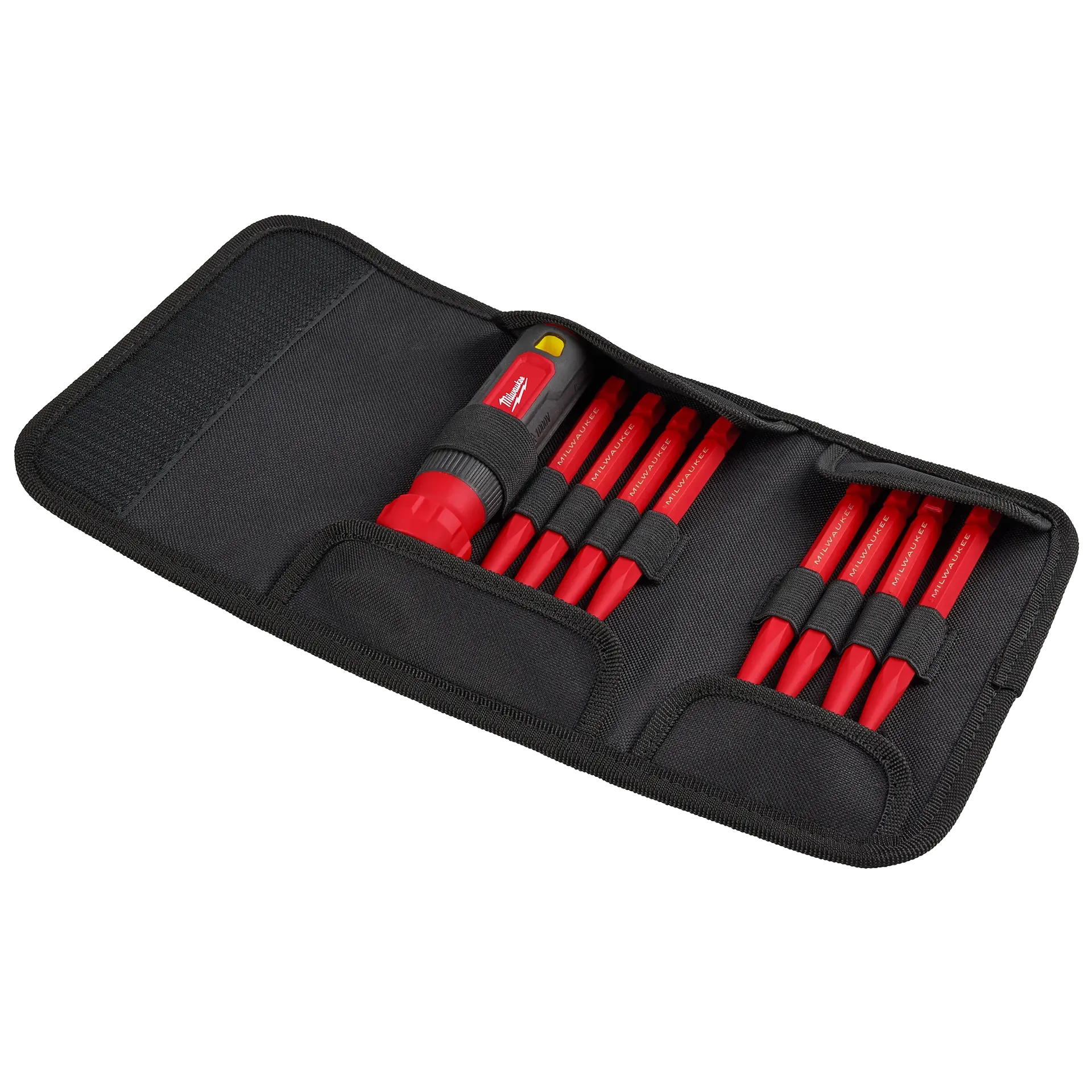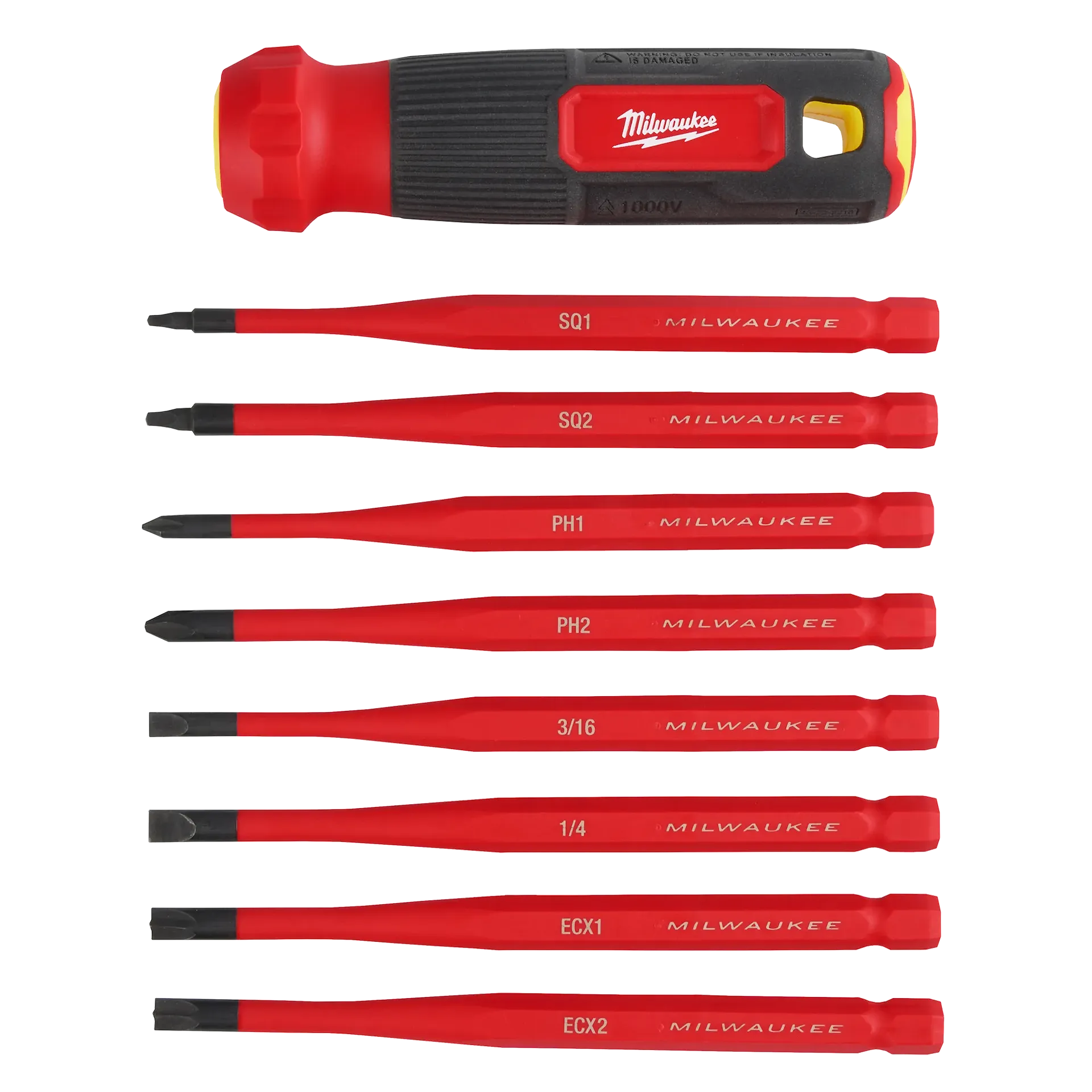 The MILWAUKEE® 8-in-1 1000V Insulated Slim Tip Multi-Bit Screwdriver is more versatile and you can easily swap out bits. It features a flush insulation layer at the screwdriver tip delivering easy access into tight spaces. The 1000V-rated layer of insulation is flame-retardant and impact-resistant. Our Milwaukee® 8-in-1 1000V Insulated Slim Tip Multi-Bit Screwdrivers feature a comfortable barrel grip handle and include common tip types such as Phillip's, Cabinet, and Square. These insulated screwdrivers are UL classified, are certified to IEC 60900 and ASTM F1505 standards for insulated hand tools, and are backed by Milwaukee's Limited Lifetime Warranty.