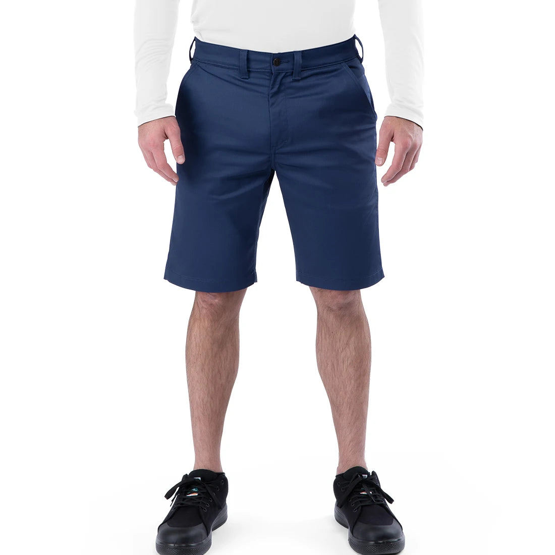 Upgrade your workday with our Big Flex Work Shorts designed for comfort and durability. Featuring a low rise and chino style with a stretchable waistband, these shorts offer a secure fit with YKK® brass push button and button closure. Reinforced front pockets and piped back pockets provide ample storage, while the quick-dry and wrinkle-resistant fabric ensures you stay fresh throughout the day. Crafted with double-stitched seams and high-tenacity thread for long-lasting wear, these industrial wash-friendly shorts are built to withstand tough work environments while keeping you comfortable.