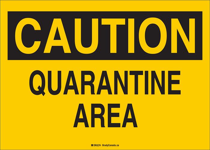Sign - Brady Caution Quarantine Area, 10" H x 14" W 126052 / 126053 / 126051