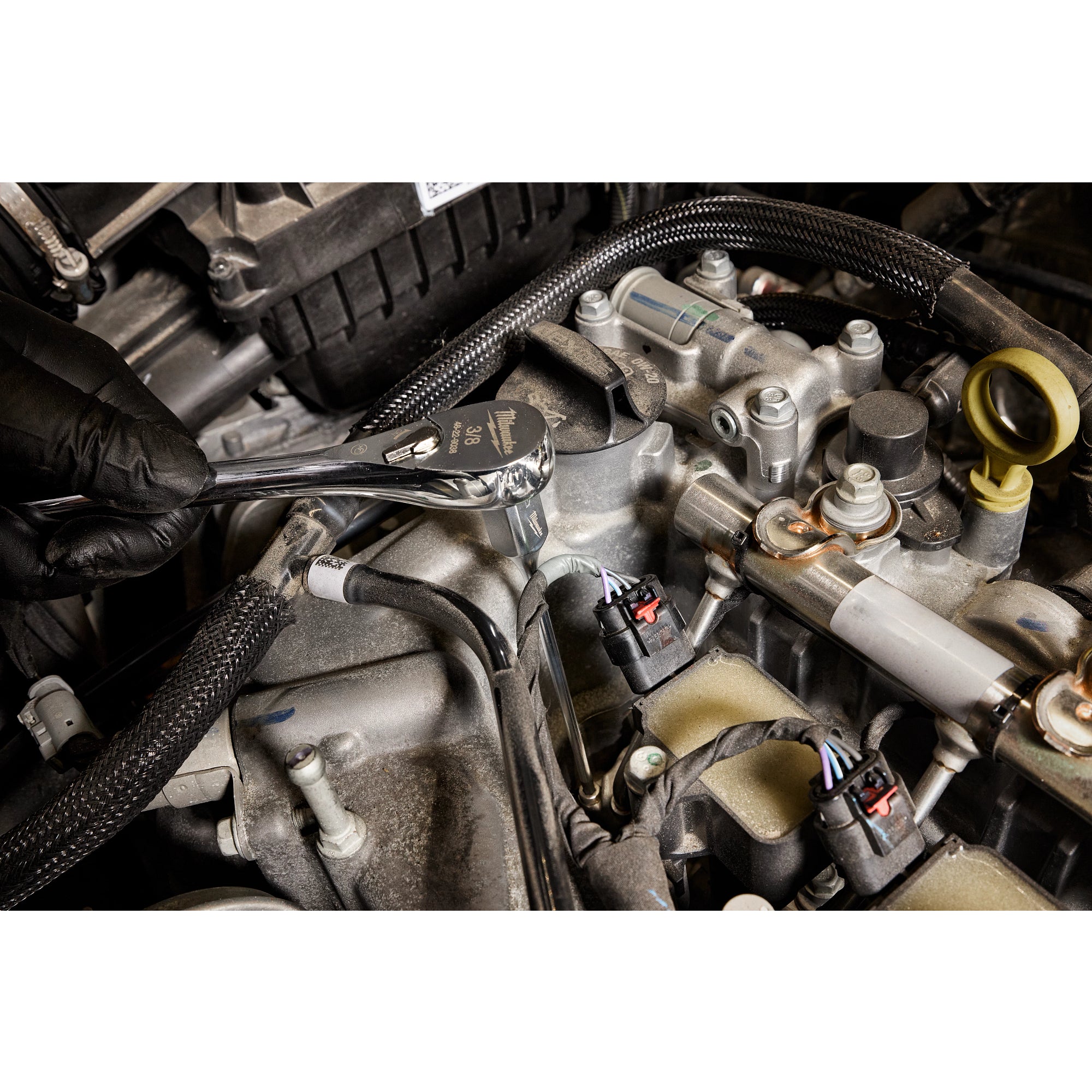 Our 8pc 3/8" Drive SAE Long Hex Bit Socket Set with FOUR FLAT™ sides is designed from the ground up to be part of the most versatile socket family. Milwaukee® long reach sockets feature an innovative design with four parallel flat sides, which deter rolling and are wrench compatible. The 6" length and slim profile of these sockets provide the best access in tight spaces. The one-piece socket design offers improved durability compared to two-piece designs by eliminating the risk of the bit separating from the socket base. The laser-engraved size markings provide easy identification, and chrome plating offers rust and corrosion protection. This set also includes a storage tray for better organization. All Milwaukee® sockets are backed by a Lifetime Guarantee.