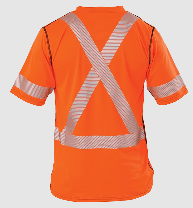 - Flame-Resistant Reflective Material placement provides 360° visibility with 2 vertical stripes on the front, a horizontal stripe around the waist, a horizontal stripe around each arm and an “X” on back