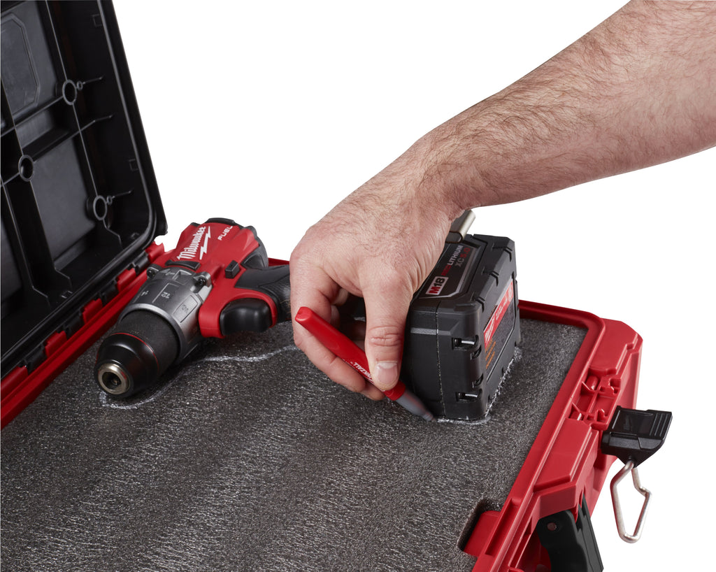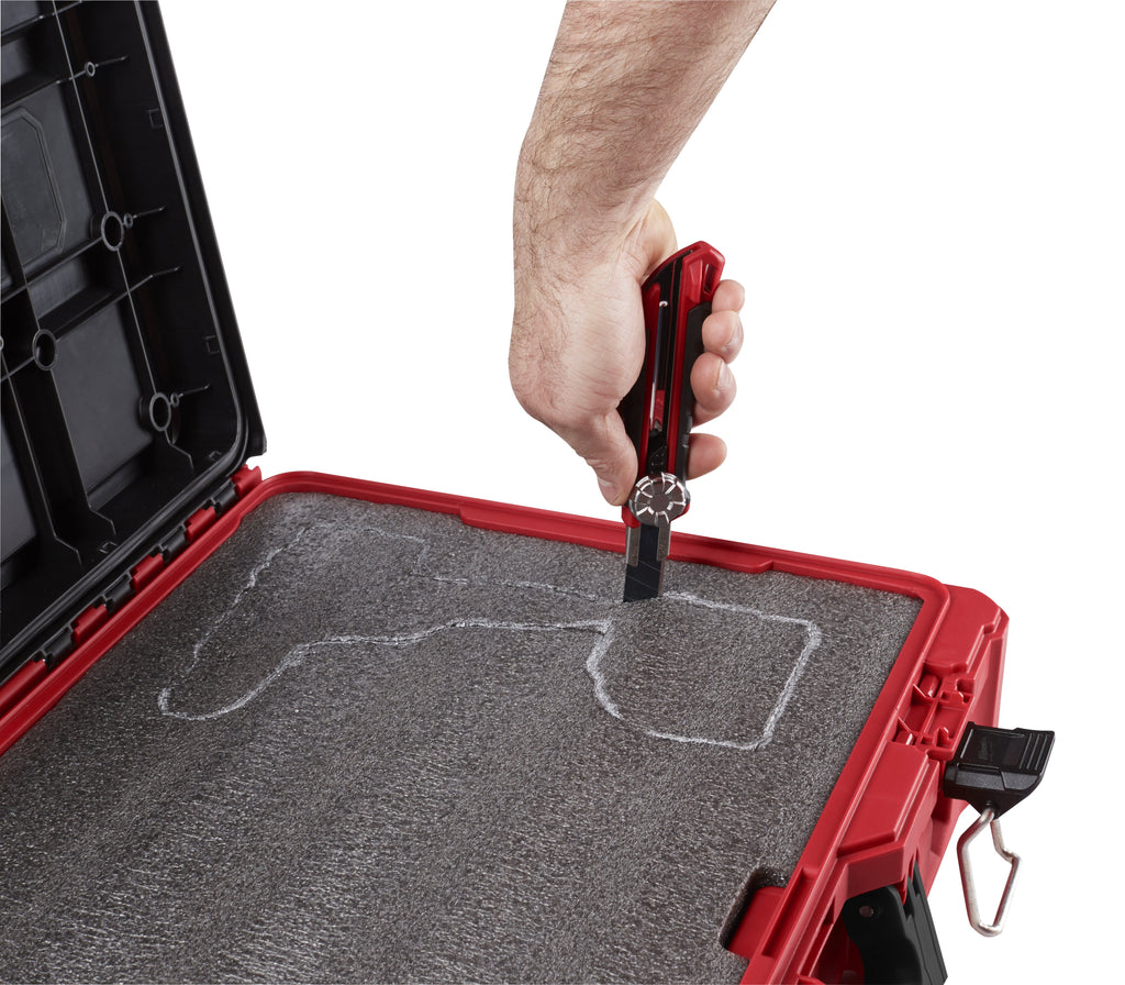 The PACKOUT modular storage system is the industry's most durable and versatile storage system. The durable PACKOUT tool case with customizable foam insert is constructed with impact resistant polymers and metal reinforced locking point. The tool case connects with other PACKOUT system components via integrated locking cleats and features a 75 lbs of weight capacity. An IP65 rated weather seal protects tools and accessories from rain and other jobsite debris and the included customizable foam insert allows users to trace and cut out custom pockets to securely transport and store tools.