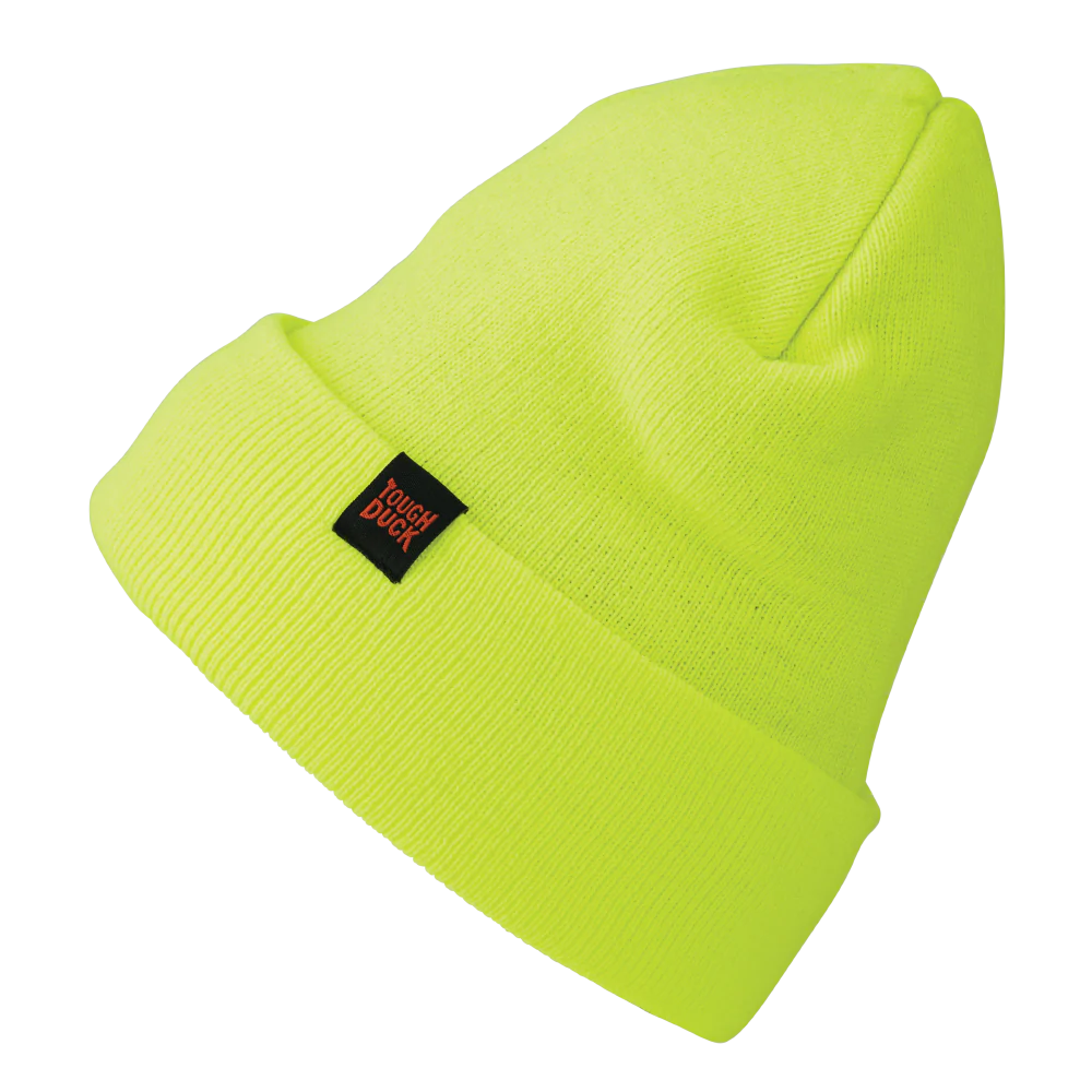 Stay warm and visible on the job with our Tough Duck High Visibility Toque. Crafted from 100% acrylic knit with 3M™ Flex 40 Thinsulate™, this toque delivers optimal warmth without compromising on comfort. Its wide cuff ensures a secure fit, while the stretch fabric (up to 40% in each direction) retains its insulation properties even after repeated wear. Available in bright orange and fluorescent green for enhanced visibility in challenging conditions.