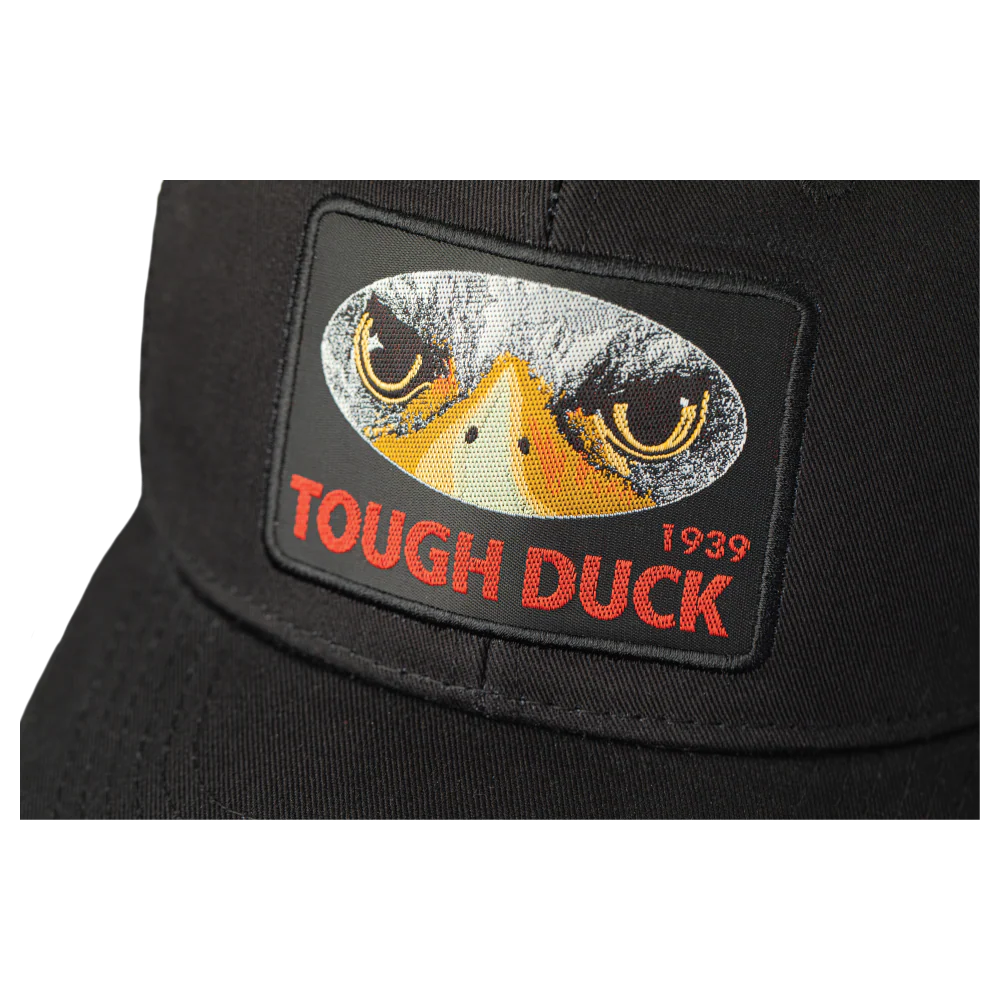 Meet Tough Ducks iconic Trucker Hat featuring a Tough Duck embroidered patch on the front. Crafted from 100% cotton with a polyester mesh back, this hat offers a classic look and breathable comfort. The adjustable snapback ensures a personalized fit for all-day wear. Whether you're on the job or enjoying outdoor adventures, our trucker hat keeps you cool and stylish with a touch of Tough Duck flair!