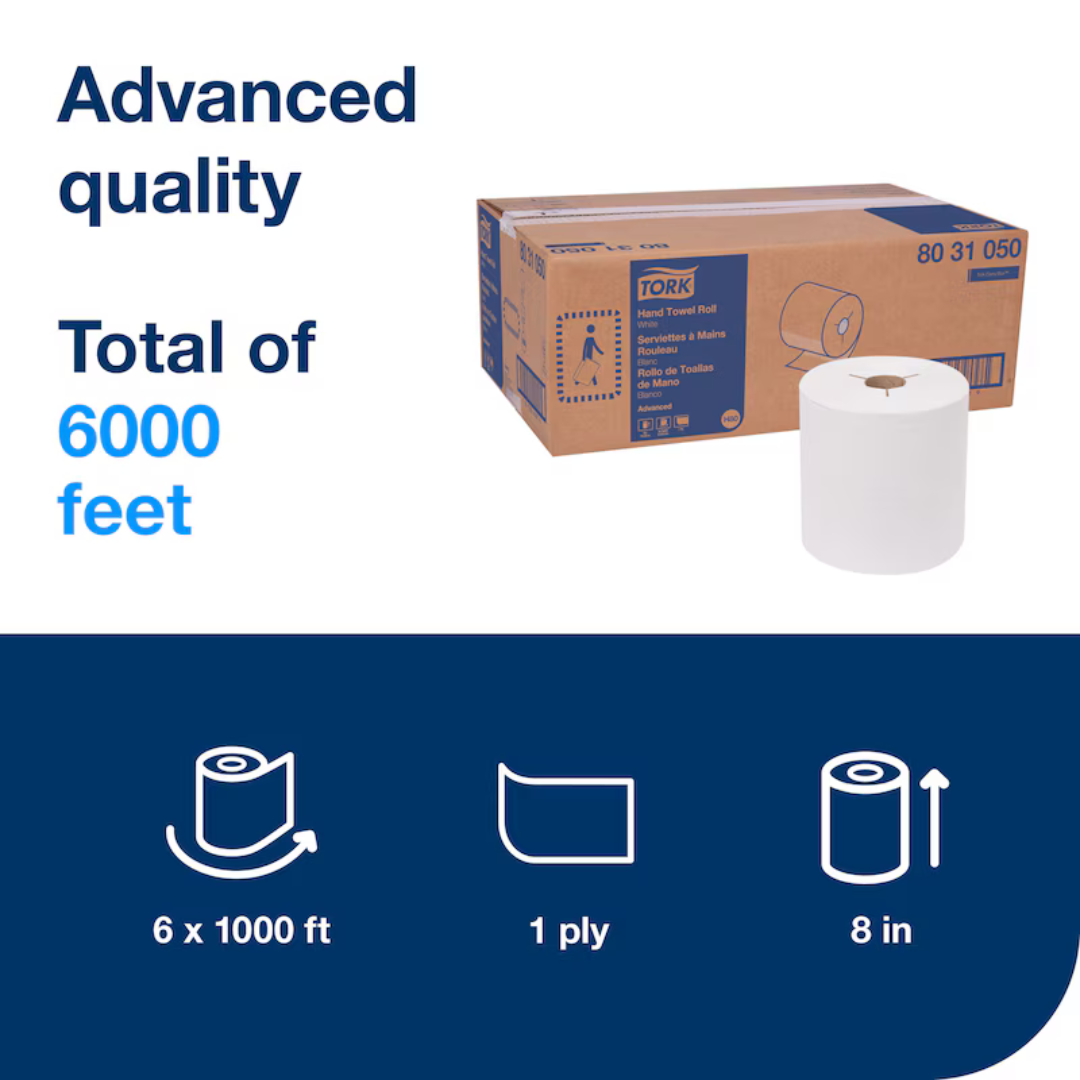 Hand Towel - Tork White Hand Towel Roll, 1000 (Case of 6), H80