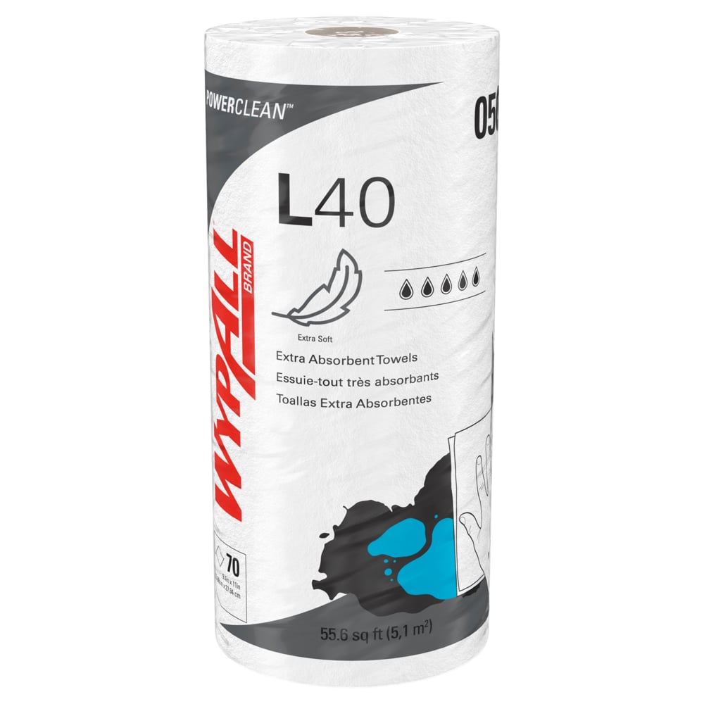 Wipers - WypAll® Power Clean L40 Extra Absorbent Towels Small Roll, White (Case of 24 Rolls), 05027