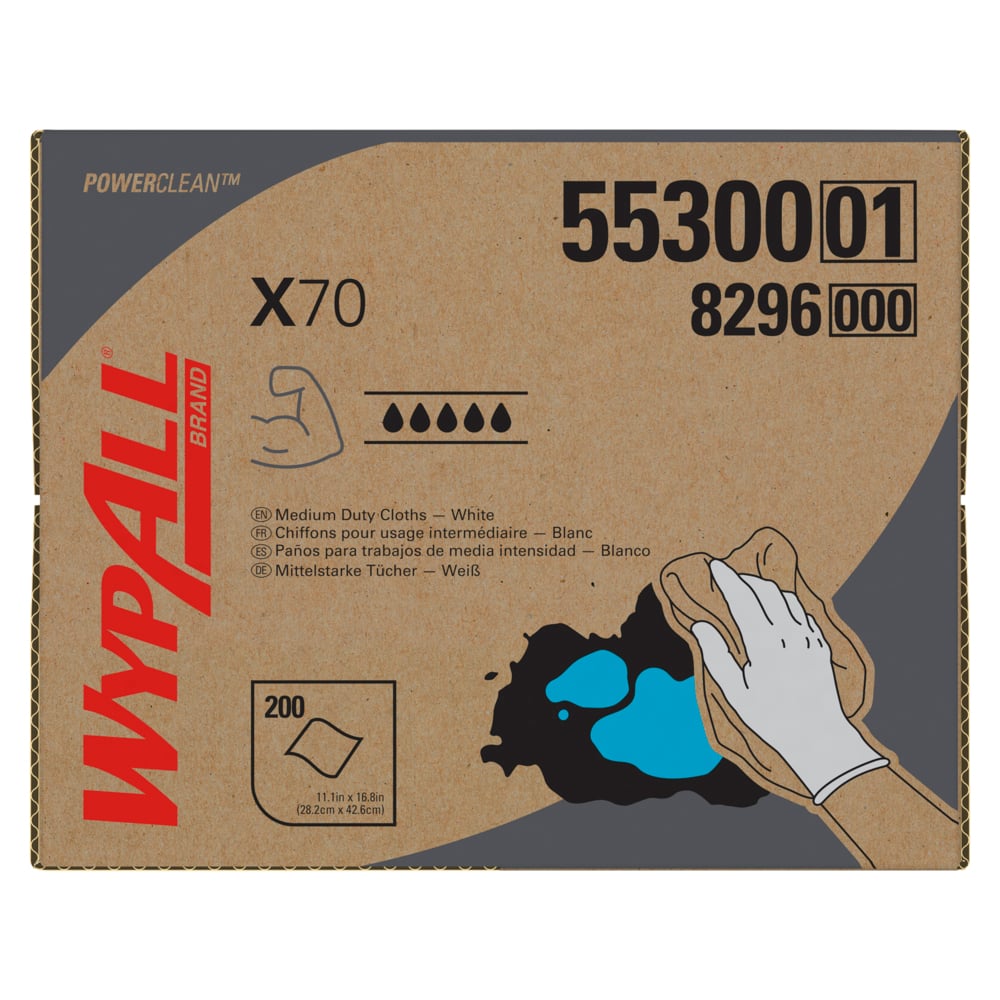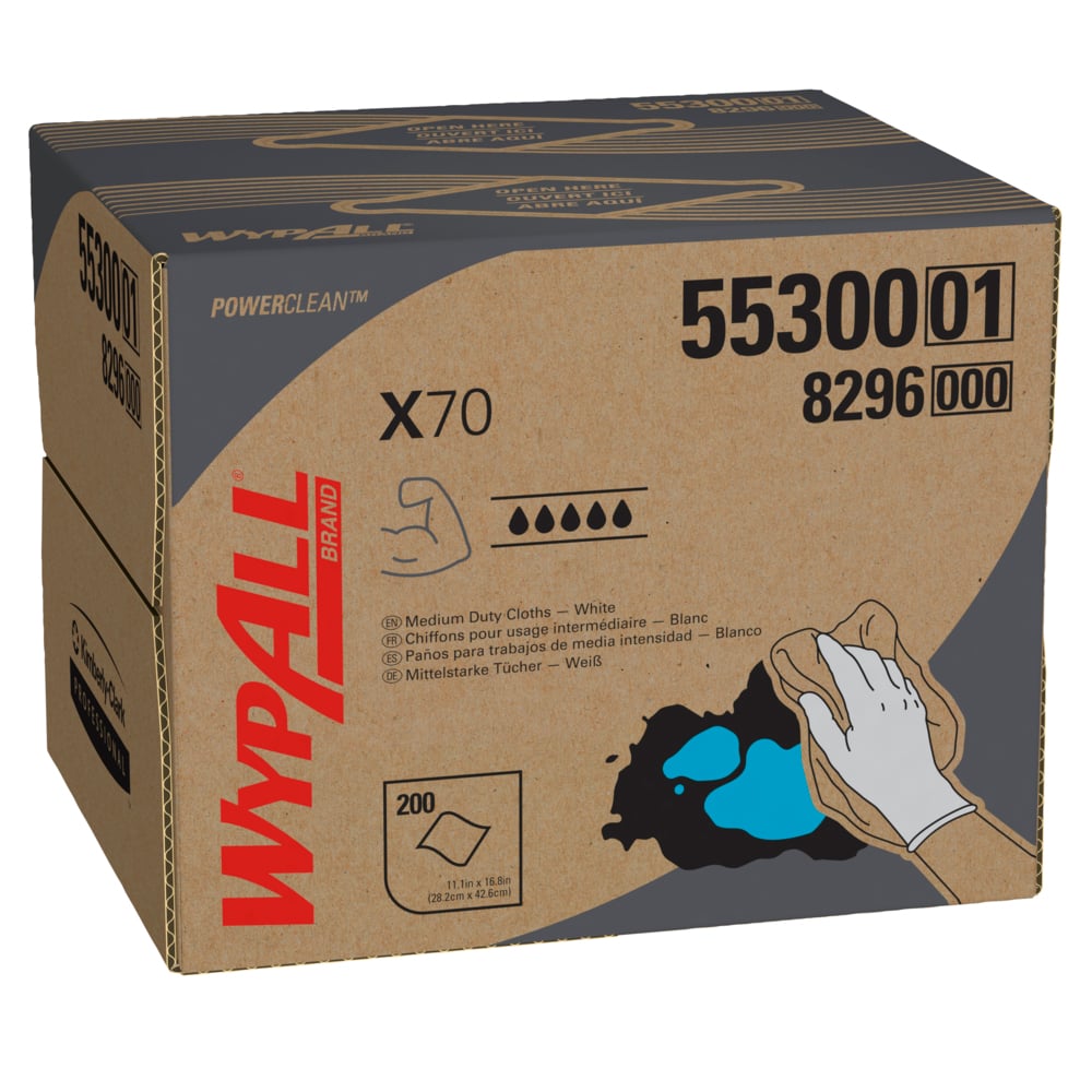 - 200 Sheets/Box; 1 Box of WypAll® PowerClean™ X70 Medium Duty Cloths/Case; 200 Sheets/Case; White; Brag Box; Long Lasting Towels