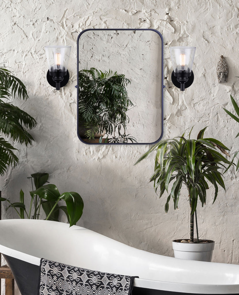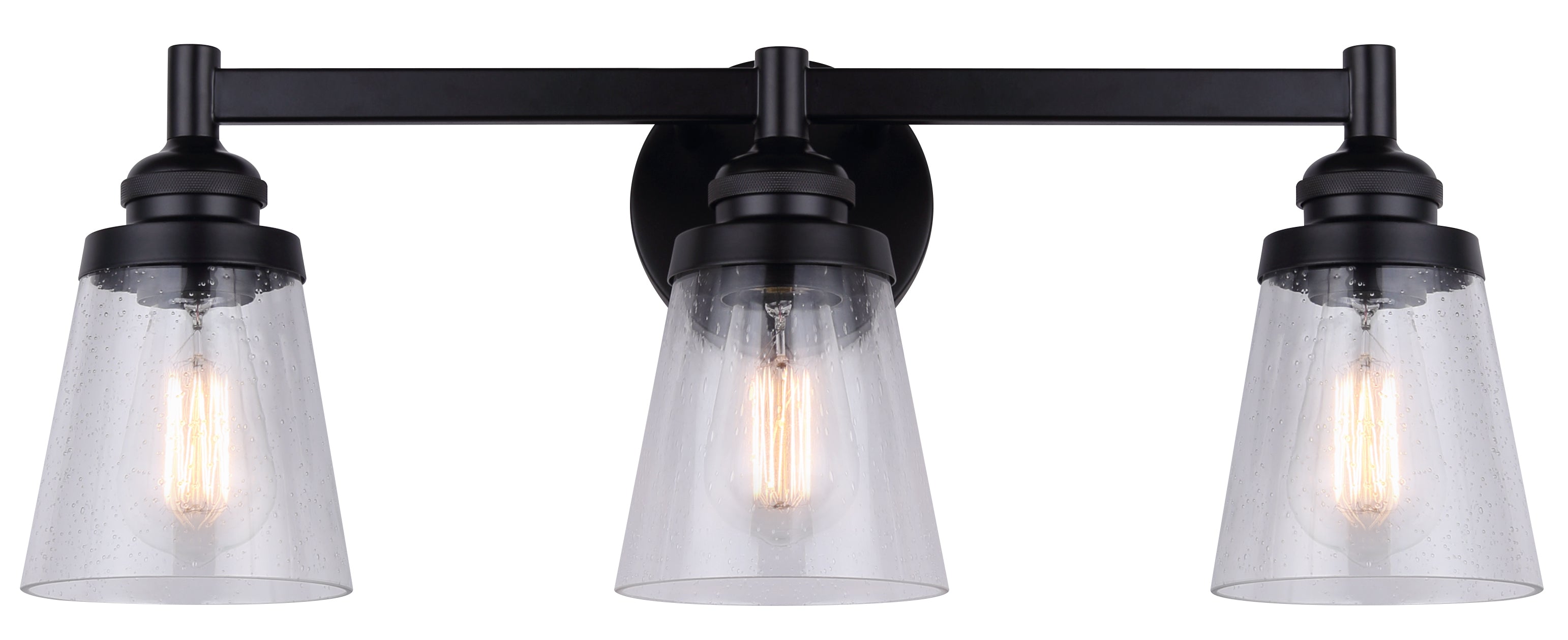 Your home lighting determines how a room looks and feels, so make sure your time at home shines by including DECLAN in your plans. DECLAN is the ideal transitional vanity light as it suits many home decor styles such as traditional, farmhouse or industrial. Its ever-trending matte black finish complements its beautiful seeded glass shades to perfection, leaving an eye-catching style and lasting impression.