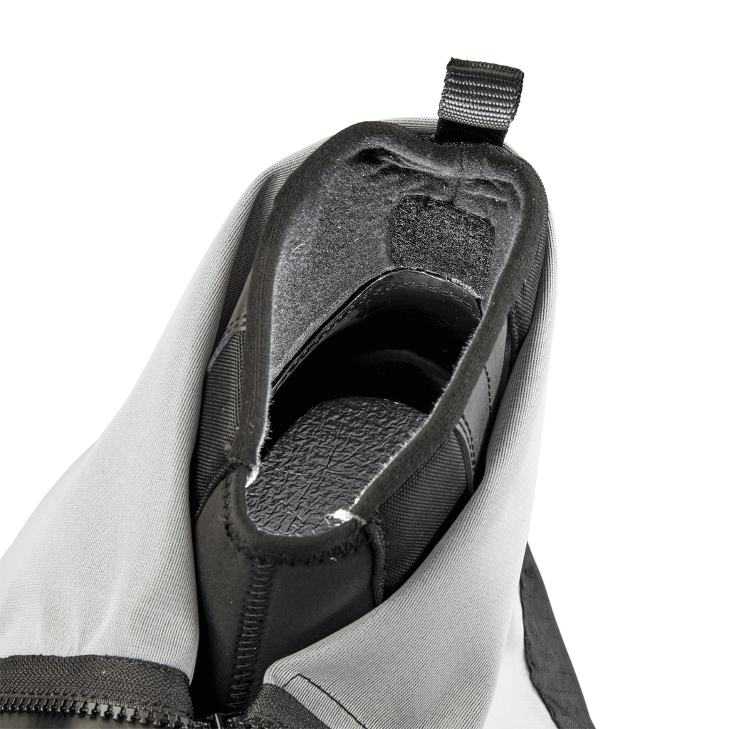 - Tall height, leather and nylon upper with zipper enclosure for improved fastening