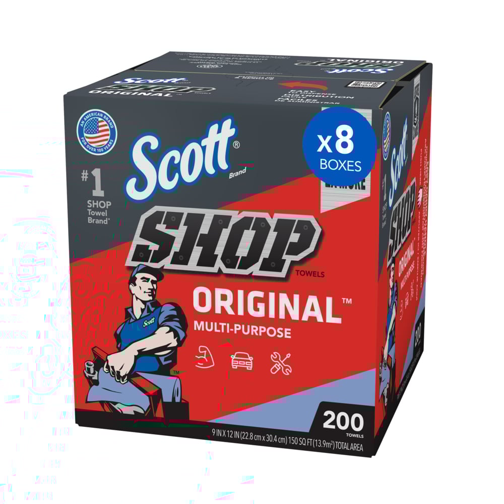Wipers - Scott® Shop Rags, Roll, 11" x 10.4" (Case of 30 Rolls), 75230