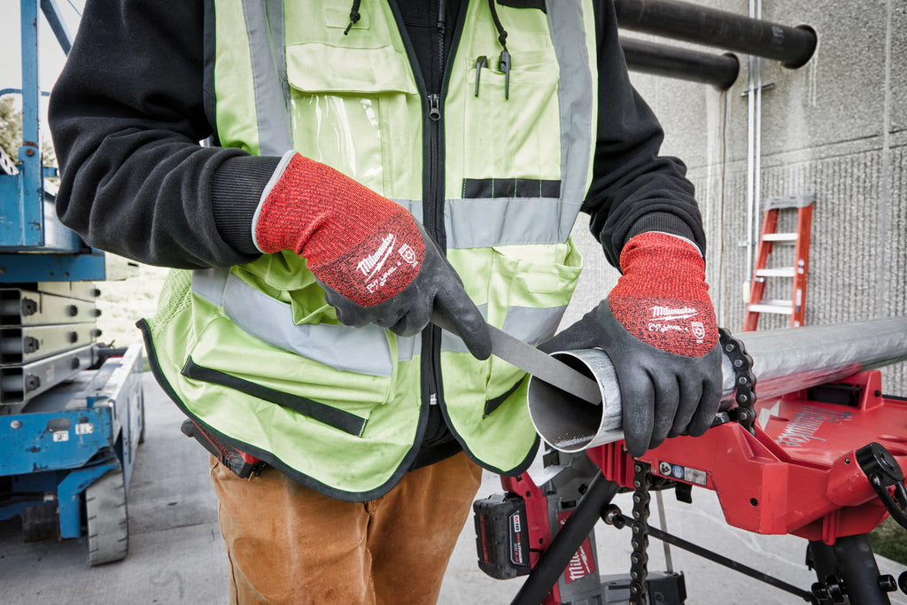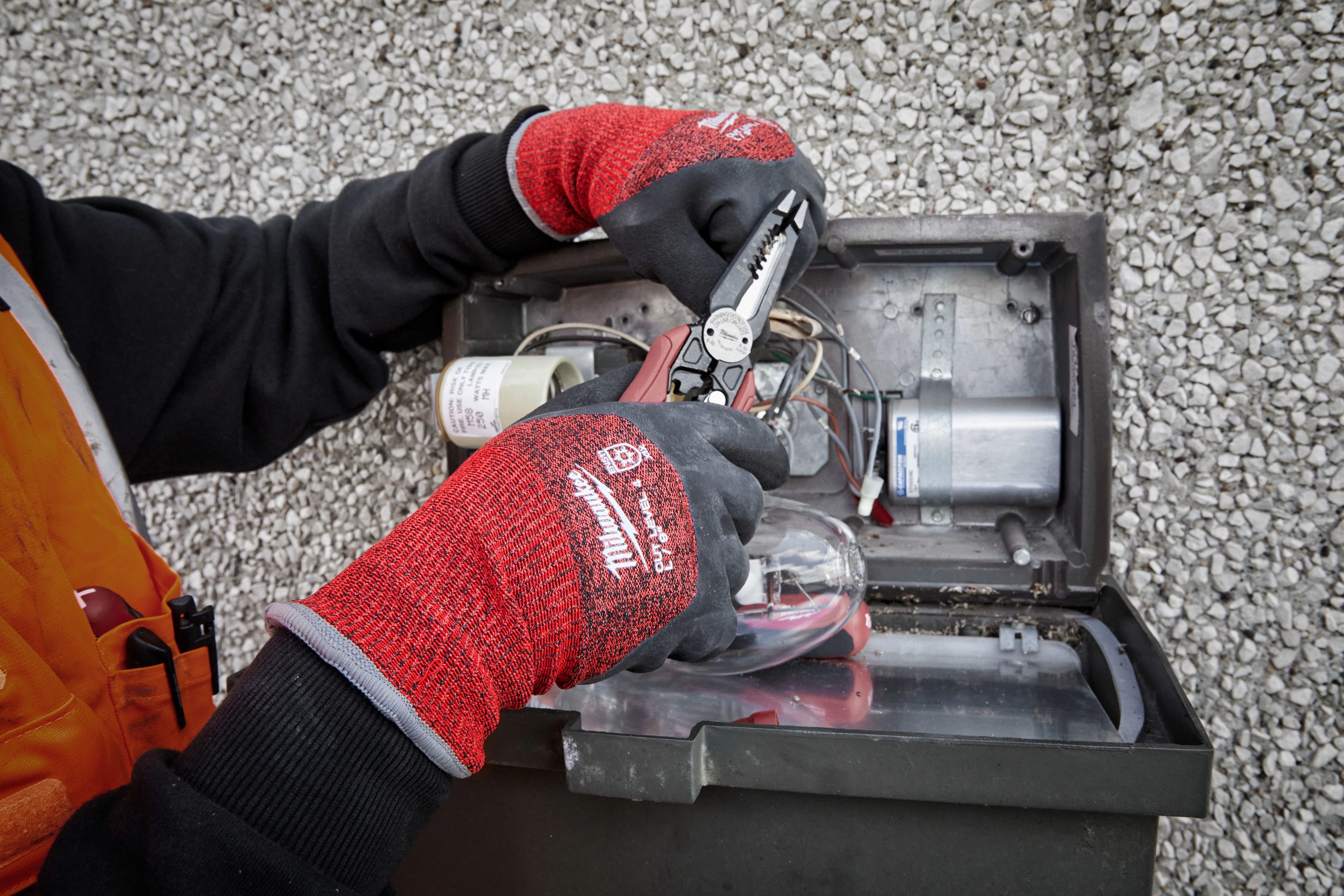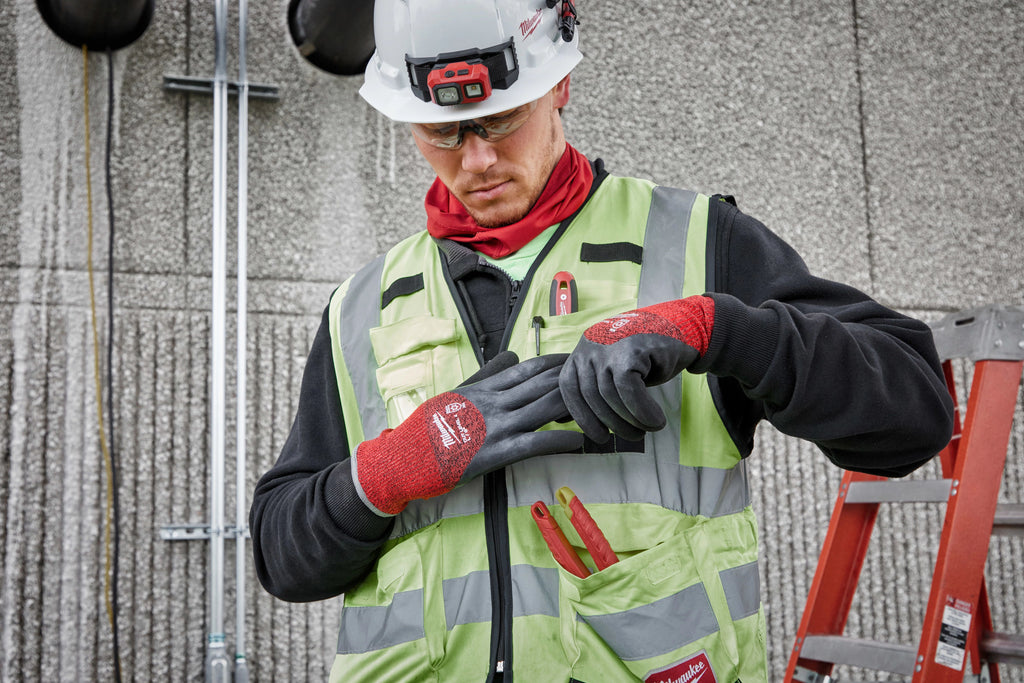 Cut Level 4 Winter Dipped Gloves are designed to provide ultimate warmth, all–day comfort, and best-in-class dexterity for handling small objects. The insulated winter work gloves utilize a warm acrylic terry liner to maintain warmth in the coldest outdoor conditions. The gloves have a secure dual thermal liner to comfortably keep your hands warm without the liner separating after extended use on the job site. These MILWAUKEE® gloves feature a 15 gauge nylon outer liner resulting in high dexterity fingertips and breathability. The insulated cut-resistant work gloves are ideal for material handling, demolition, wire stripping, pipe threading, general-purpose, and remodeling applications. The warm winter work gloves are constructed of ¾ double-dipped latex palm microfinish for water resistance to provide best-in-class grip performance in the coldest temperatures.
