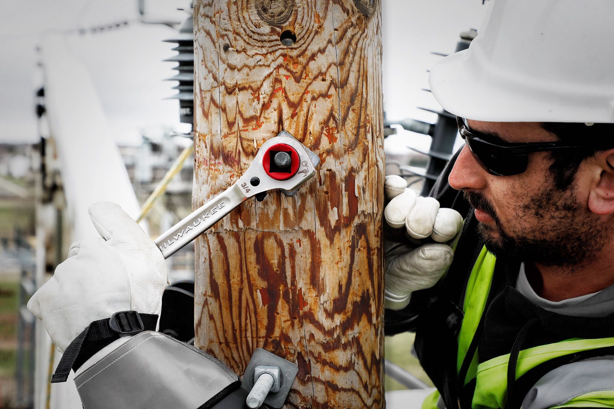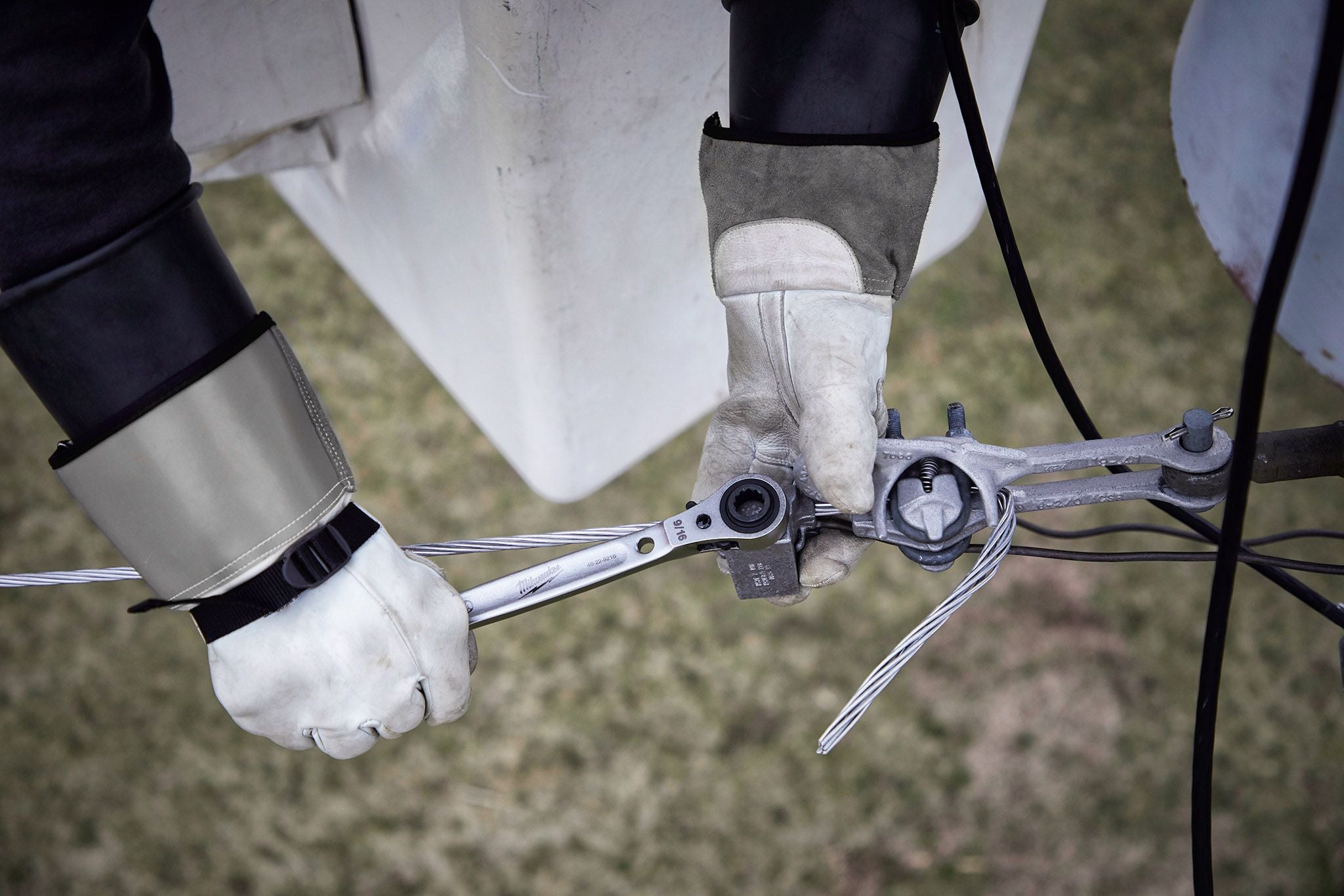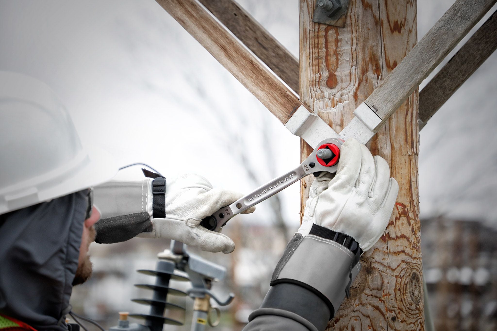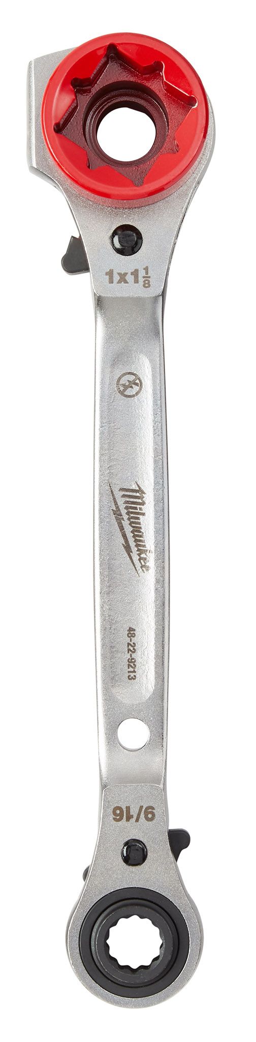 MILWAUKEE® Lineman's 5-in-1 Ratcheting Wrench features the most durable ratchet. The ratcheting wrench has built-in strike face offered in both milled and smooth, providing you with a dedicated surface for hammering. These wrenches have large directional switches that you can easily press while wearing gloves. The durable forged steel construction provides you with longer tool life. The wrench fits 3/4", 1", and 1-1/8" square sockets and 9/16" and 3/4" standard sockets.