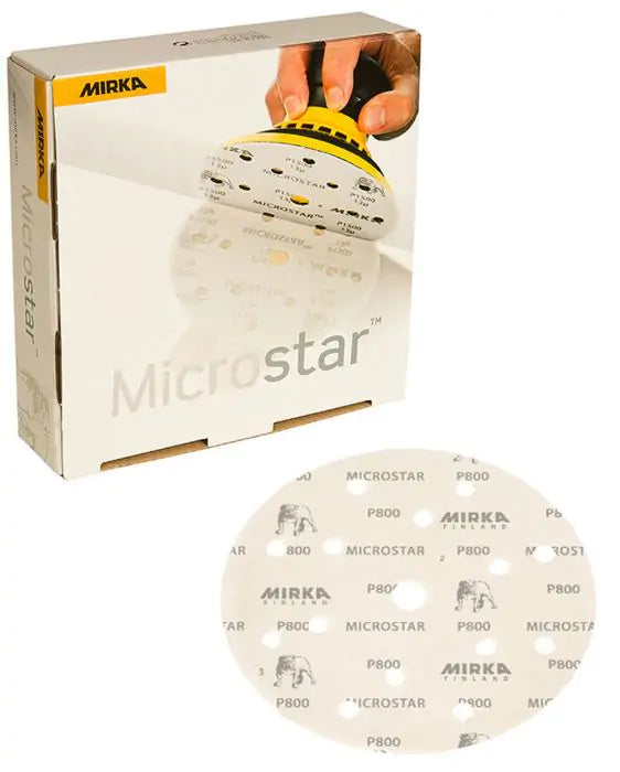 Ce nouveau produit de film abrasif, Microstar, est conçu pour le matage et la rectification de peinture des applications de couches de finition et transparentes. Microstar a une couche spéciale de stéarate et un support en film lisse. Ce produit a une finition de haute qualité et dure plus longtemps car il ne s'encrasse pas aussi facilement que les produits traditionnels. Microstar produit un motif de rayures fines facile à polir. Pour un résultat parfait, il est recommandé d'utiliser Microstar avec une pastille d'interface de 5 mm. Microstar est développé pour le ponçage à sec uniquement.