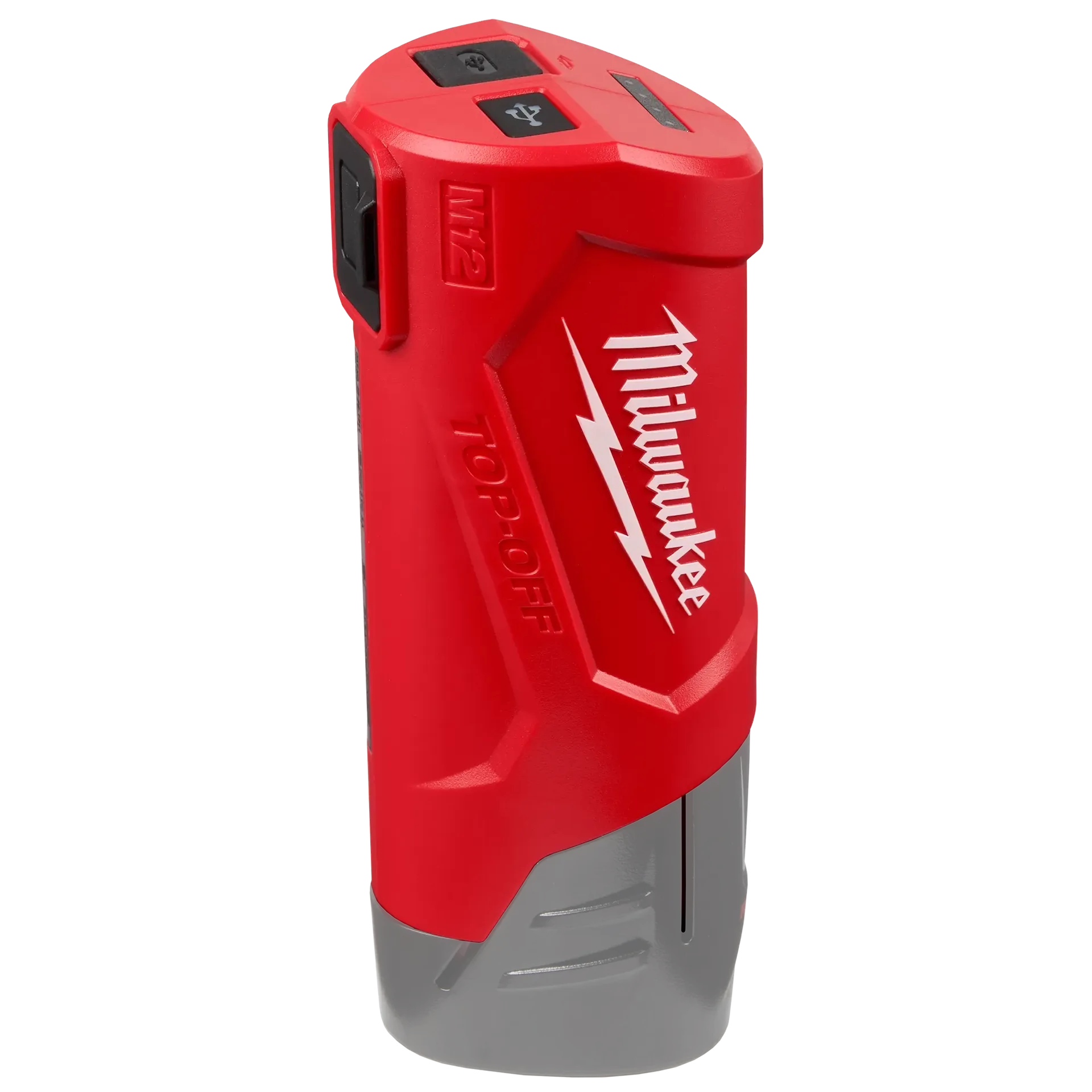 Le bloc d'alimentation et chargeur M12™ TOP-OFF™ offre aux utilisateurs de batteries M12™ une solution 2-en-1 pour recharger leurs batteries et appareils personnels, que ce soit sur le chantier ou ailleurs. Compatible avec toutes les batteries M12™, il fournit une puissance de 15 W pour recharger vos appareils personnels, tels que téléphones, tablettes, casques audio et autres petits appareils électroniques. Ce bloc d'alimentation M12™ nouvelle génération offre une recharge jusqu'à 50 % plus rapide grâce à son port USB-C bidirectionnel, optimisant ainsi votre productivité tout au long de la journée. Il peut également alimenter tous les accessoires chauffants M12™ pour une fonctionnalité accrue. Le bloc d'alimentation est fourni avec un câble USB-C tressé de 60 cm et un adaptateur secteur USB-C.