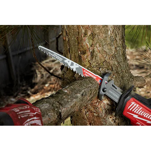Les lames SAWZALL® AX™ à dents en carbure pour l'élagage et le travail du bois propre sont conçues pour les travaux de coupe les plus rapides, aussi bien en surface qu'en sous-sol. Ces lames d'élagage SAWZALL® offrent une durée de vie jusqu'à 50 fois supérieure à celle des lames de scie alternative en acier au carbone actuellement disponibles. Les lames MILWAUKEE® AX™ pour l'élagage et la coupe du bois propre sont dotées d'une denture à 3 TPI, permettant une coupe ultra-rapide dans le bois propre, et d'une géométrie de lame à profil bas conçue pour l'élimination des racines. Nos dents en carbure optimisées résistent aux abrasifs tels que la roche, le sable et la terre, permettant ainsi aux utilisateurs d'éliminer les racines pour le creusement de tranchées ou les souches lors de l'abattage d'arbres. Les produits Milwaukee à dents en carbure vous permettent de couper plus longtemps, plus efficacement et plus rapidement que les autres lames à dents en carbure du marché.
