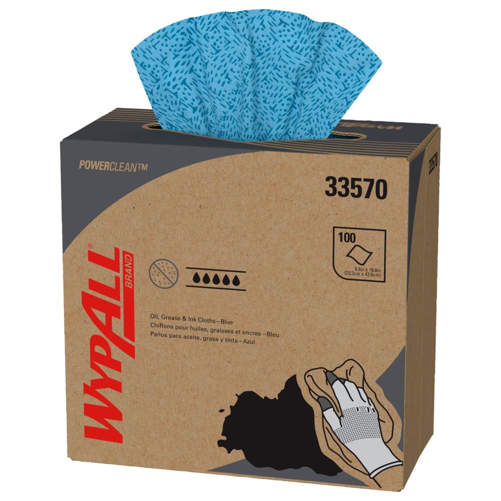 WypAll® est la marque numéro un de lingettes jetables aux États-Unis et au Canada. Chaque entreprise se salit. Lorsque vous êtes confronté à de graves dégâts d'huile, de graisse et d'encre, il vaut mieux utiliser le meilleur. WypAll® vous propose des chiffons anti-huile, graisse et encre auxquels vous pouvez faire confiance pour accomplir les tâches les plus difficiles, de l'essuyage des machines et des pièces à la préparation des surfaces avec des solvants. Ces serviettes résistantes fabriquées à partir de la technologie meltblown sont rapidement absorbantes, durables et non pelucheuses. Les chiffons anti-huile, graisse et encre WypAll® sont un substitut préféré aux serviettes en tissu industrielles car ils peuvent absorber jusqu'à 8 fois leur poids en huile. Non seulement ils ne peluchent pas pour les particules supérieures à 50 microns, mais ils contiennent également 8 fois moins de peluches que les chiffons pour t-shirts et 25 fois moins que les serviettes d'atelier traditionnelles lavées. De plus, ils ont été conçus spécifiquement pour nettoyer les surfaces rugueuses grâce à leur impressionnante résistance à la déchirure. Donc, pour les saletés d'huile, de graisse et d'encre les plus tenaces, il vaut la peine d'opter pour la marque numéro un, WypAll®.