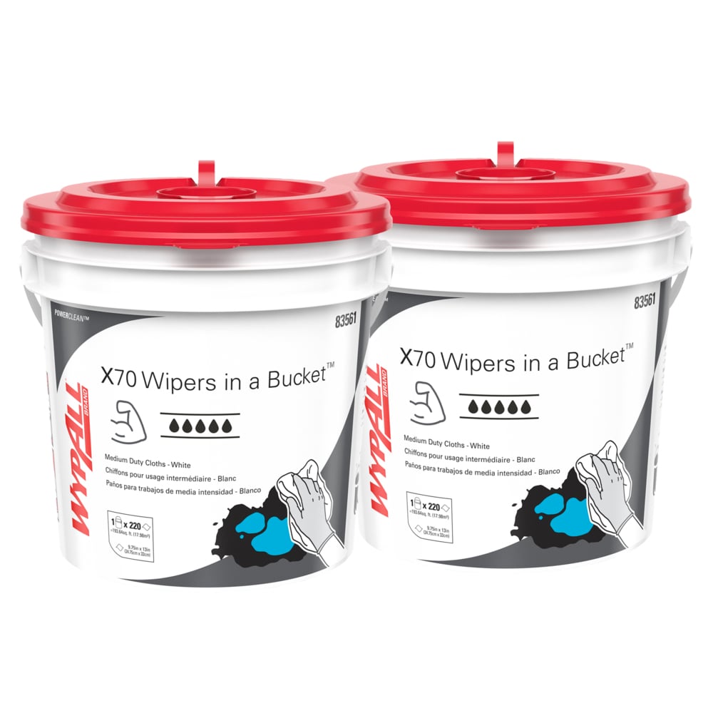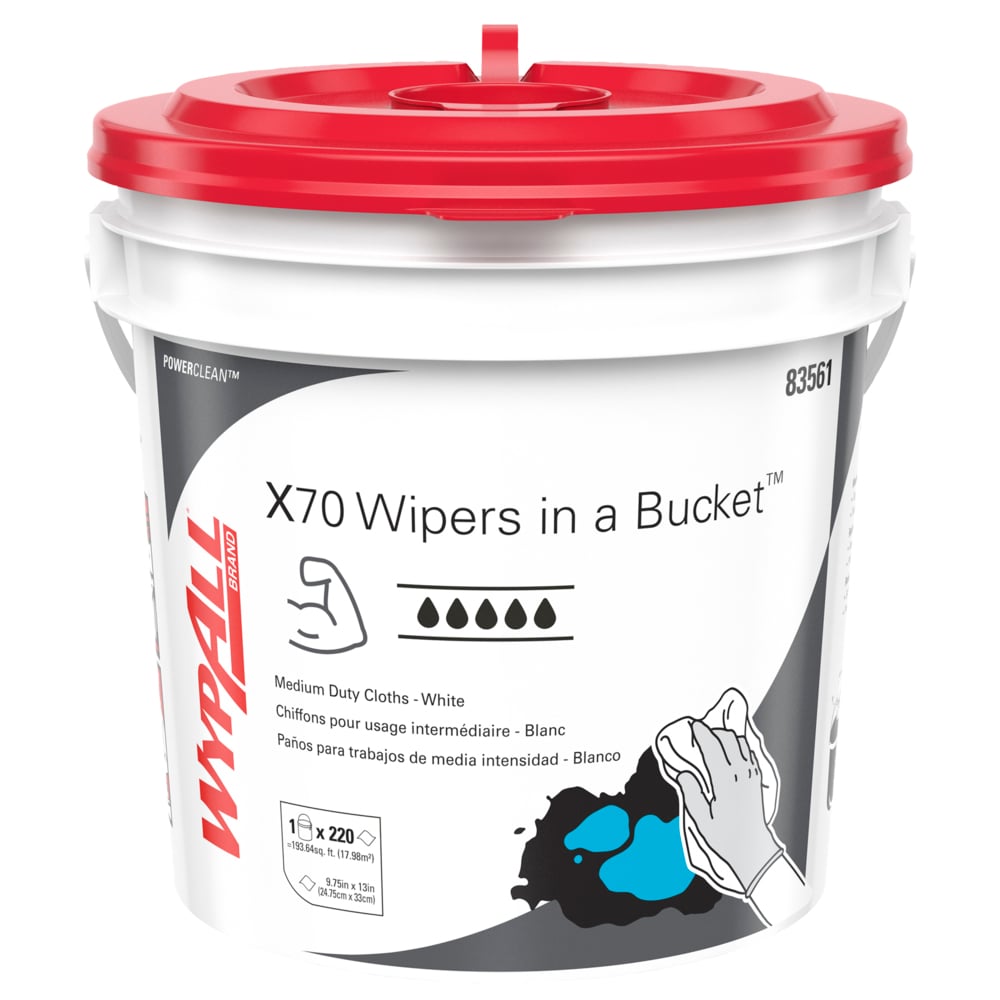 - Les chiffons WypAll® Power Clean X70 Medium Duty sont des chiffons durables et absorbants qui restent solides pour des performances de nettoyage et le seau portable aide à garder les chiffons propres