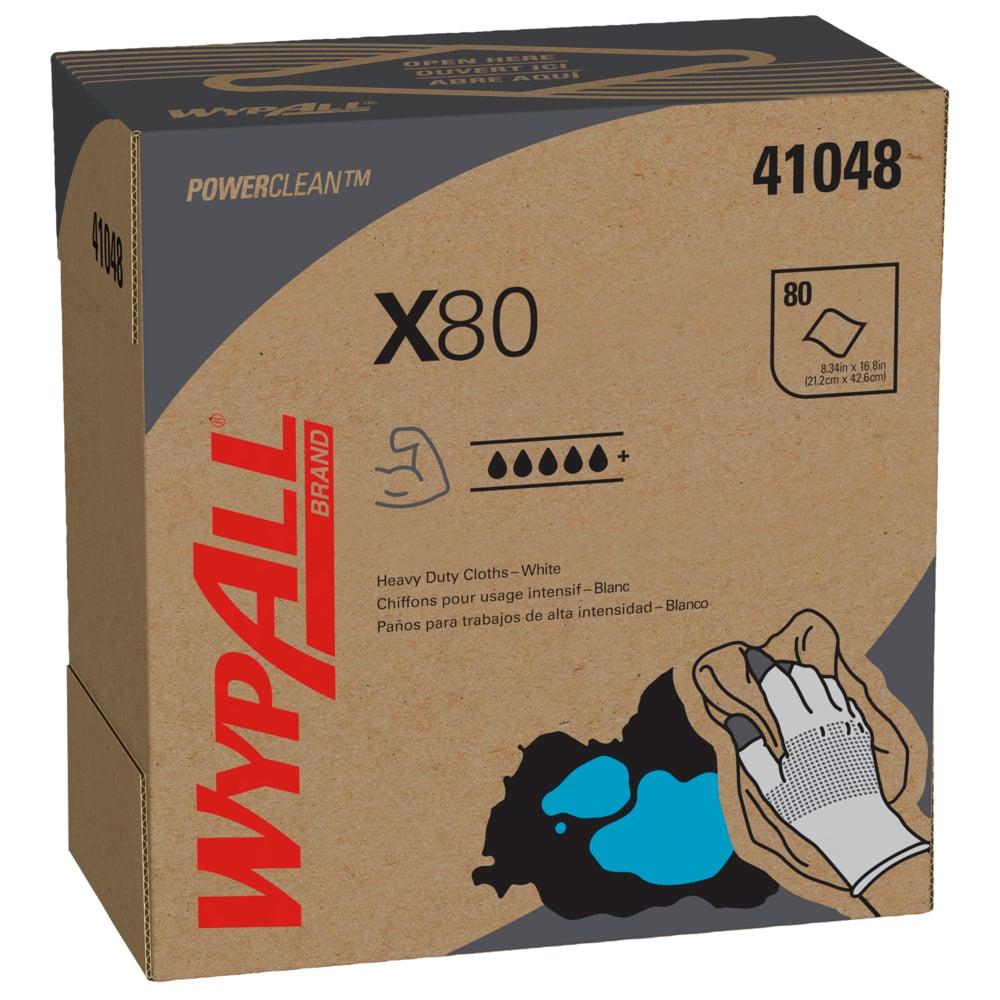 - Les chiffons WypAll® Power Clean X80 Heavy Duty sont des lingettes durables qui absorbent plus d'eau et d'huile que les chiffons d'atelier textile et restent solides pour des performances supérieures