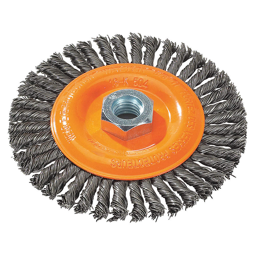 La brosse circulaire en fil d'acier est équipée d'axes filetés pour un montage rapide et facile. La brosse à double rangée torsadée et nouée est destinée au nettoyage de surface après le soudage, pour éliminer le tartre, les éclaboussures, la rouille et la corrosion.