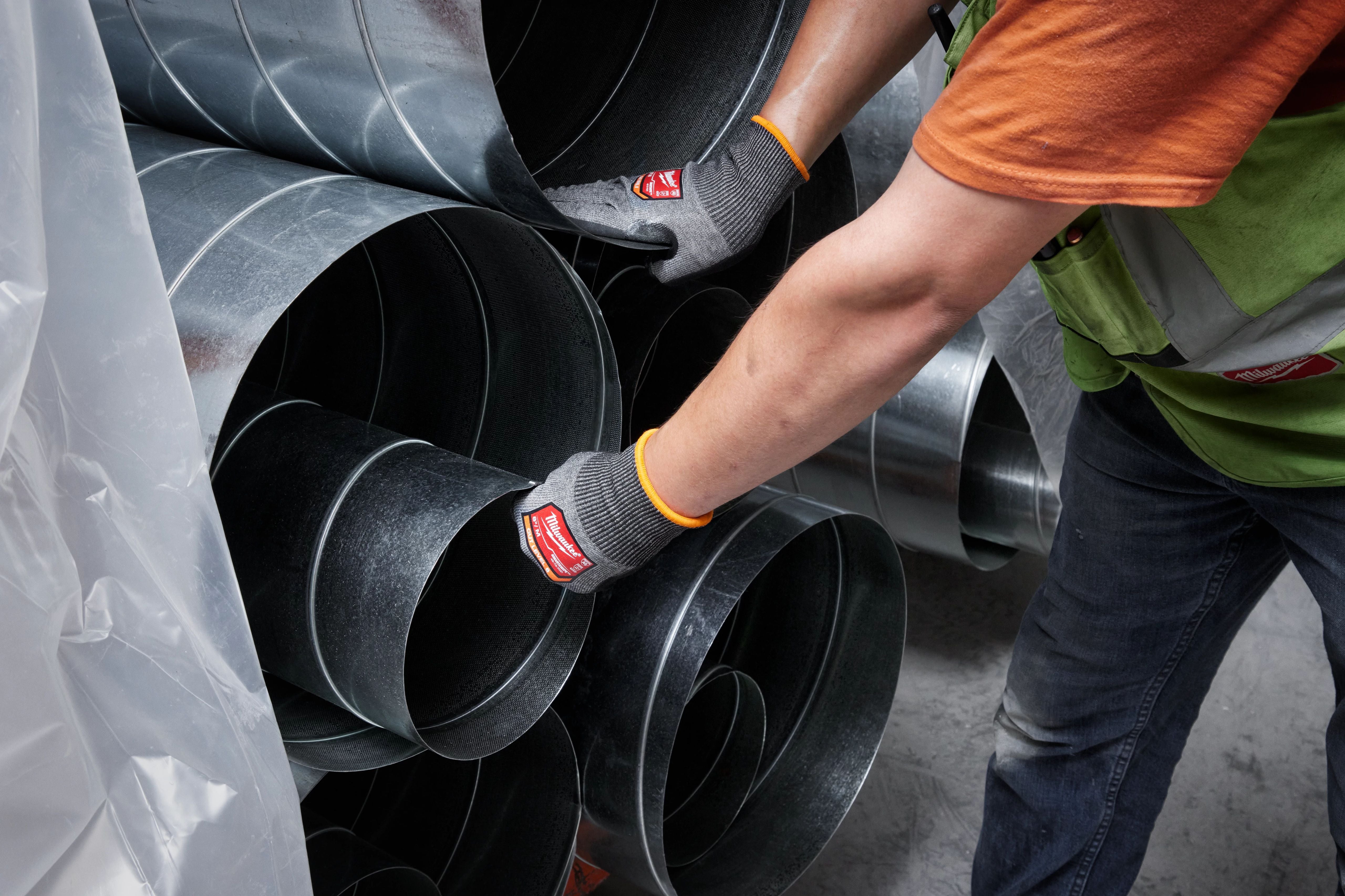 Les gants haute dextérité ANSI/ISEA 105-2016 de niveau de protection contre les coupures 8, enduits de nitrile, offrent une excellente dextérité tout en étant plus résistants. Fabriqués en maille 18 gauge pour une mobilité optimale, ces gants anti-coupures bénéficient d'un revêtement en nitrile renforcé entre le pouce et l'index, assurant une durabilité accrue aux points d'usure. L'enduction en nitrile longue durée leur confère une résistance supérieure aux conditions difficiles des chantiers. La technologie MILWAUKEE® SMARTSWIPE™ au bout des doigts permet d'utiliser les écrans tactiles sans retirer les gants. Les gants haute dextérité MILWAUKEE® sont dotés d'un bracelet de couleur et d'un logo sur le dos de la main pour une identification facile du niveau de protection contre les coupures.